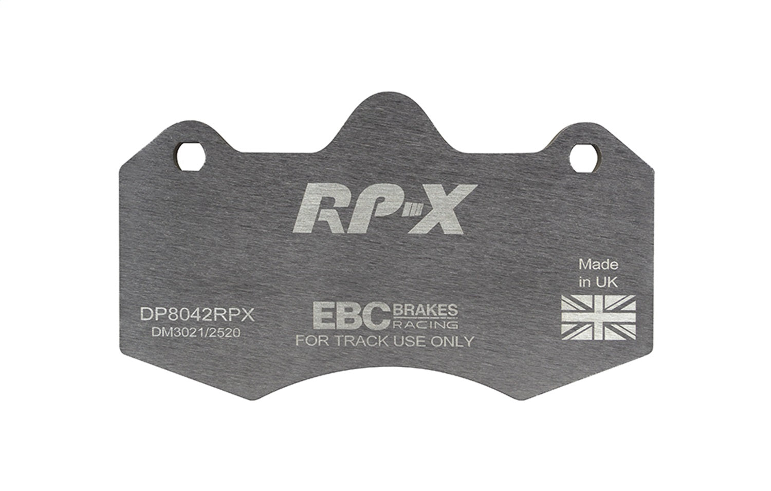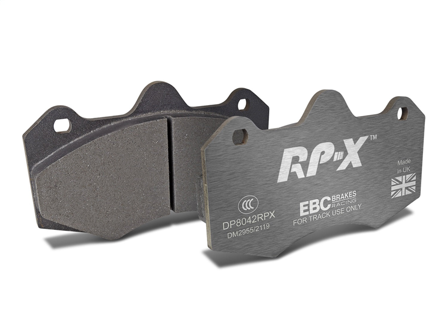 RP-X(TM) Racing Front Brake Pads by EBC(R). EBC Racings RP-X compound is an ultra-high performance track and race pad designed for performance vehicles driven hard on track and for dedicated race cars. RP-X has a very stable friction coefficient of 0.55 mu up to and beyond 850 C, making it an excellent performer for even the most demanding vehicle applications.