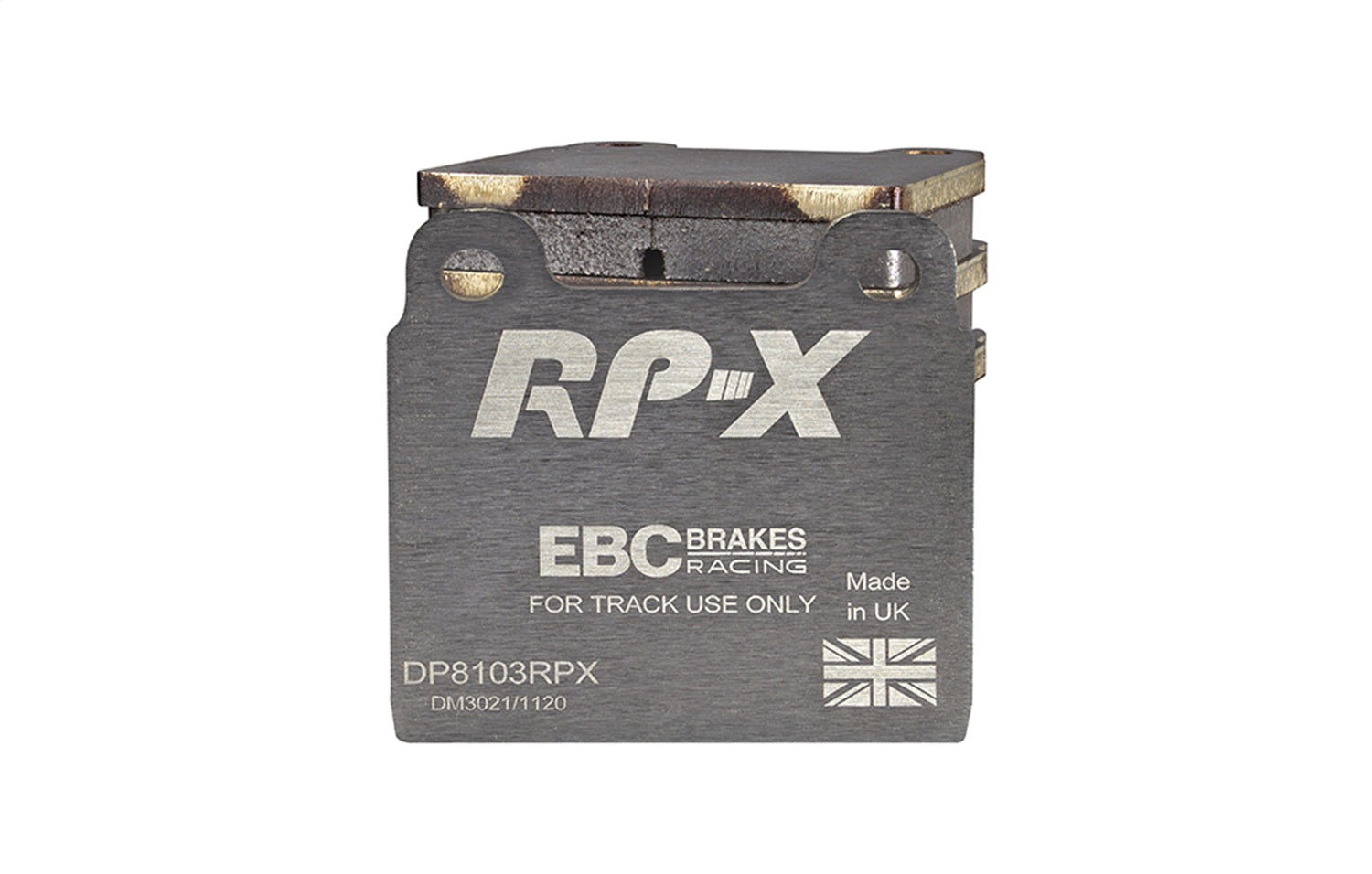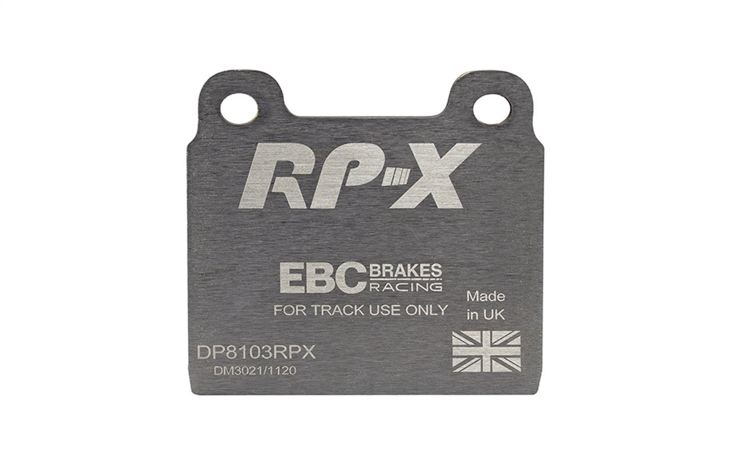 RP-X(TM) Racing Front Brake Pads by EBC(R). EBC Racings RP-X compound is an ultra-high performance track and race pad designed for performance vehicles driven hard on track and for dedicated race cars. RP-X has a very stable friction coefficient of 0.55 mu up to and beyond 850 C, making it an excellent performer for even the most demanding vehicle applications.