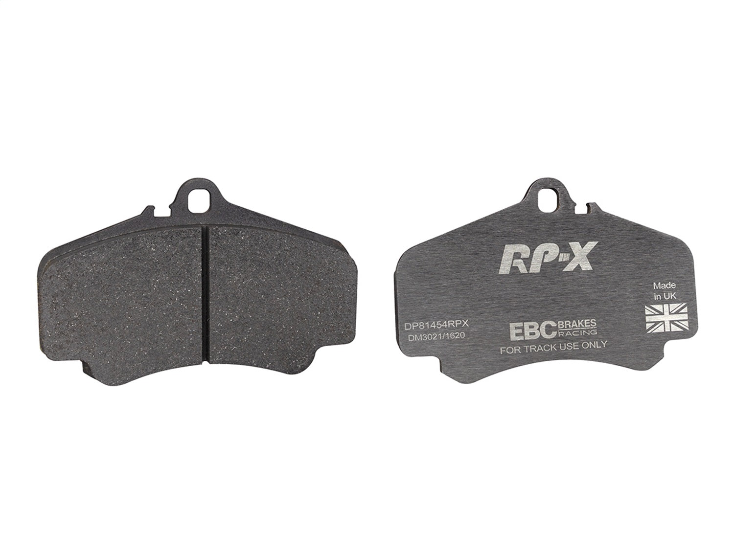 RP-X(TM) Racing Front Brake Pads by EBC(R). EBC Racings RP-X compound is an ultra-high performance track and race pad designed for performance vehicles driven hard on track and for dedicated race cars. RP-X has a very stable friction coefficient of 0.55 mu up to and beyond 850 C, making it an excellent performer for even the most demanding vehicle applications.
