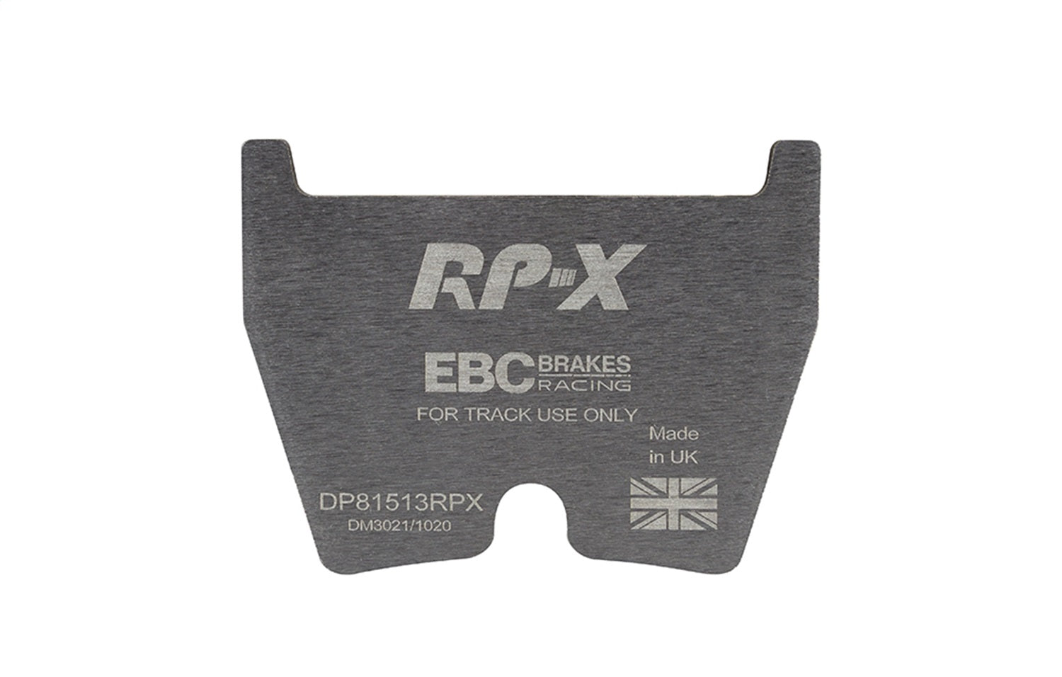 RP-X(TM) Racing Front Brake Pads by EBC(R). EBC Racings RP-X compound is an ultra-high performance track and race pad designed for performance vehicles driven hard on track and for dedicated race cars. RP-X has a very stable friction coefficient of 0.55 mu up to and beyond 850 C, making it an excellent performer for even the most demanding vehicle applications.