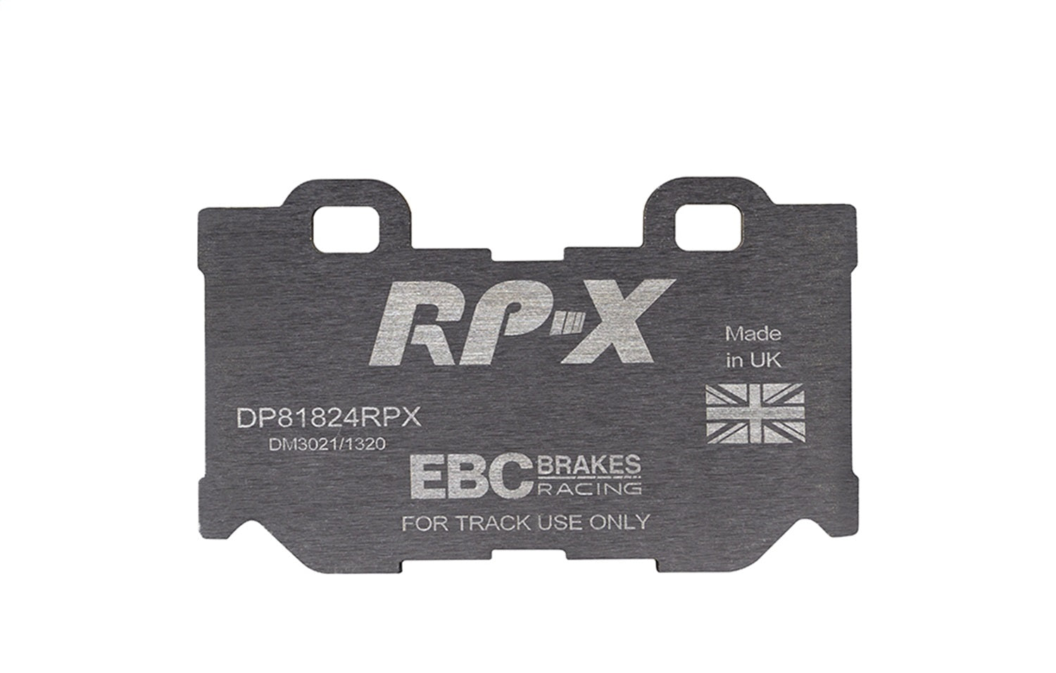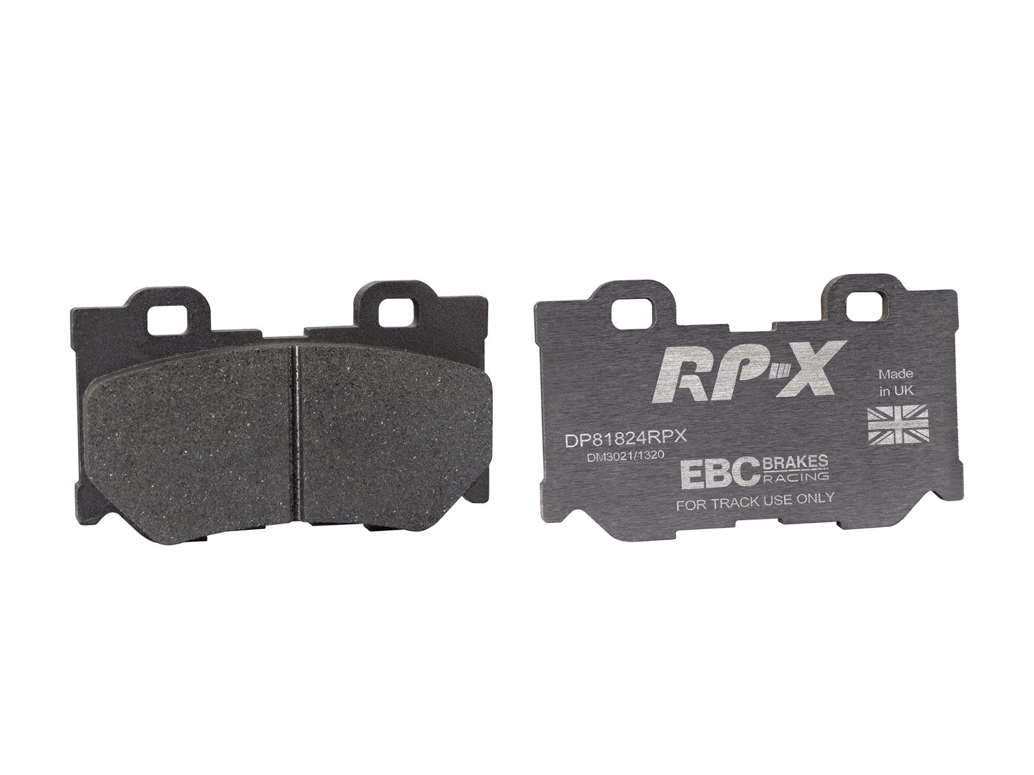 RP-X(TM) Racing Front Brake Pads by EBC(R). EBC Racings RP-X compound is an ultra-high performance track and race pad designed for performance vehicles driven hard on track and for dedicated race cars. RP-X has a very stable friction coefficient of 0.55 mu up to and beyond 850 C, making it an excellent performer for even the most demanding vehicle applications.