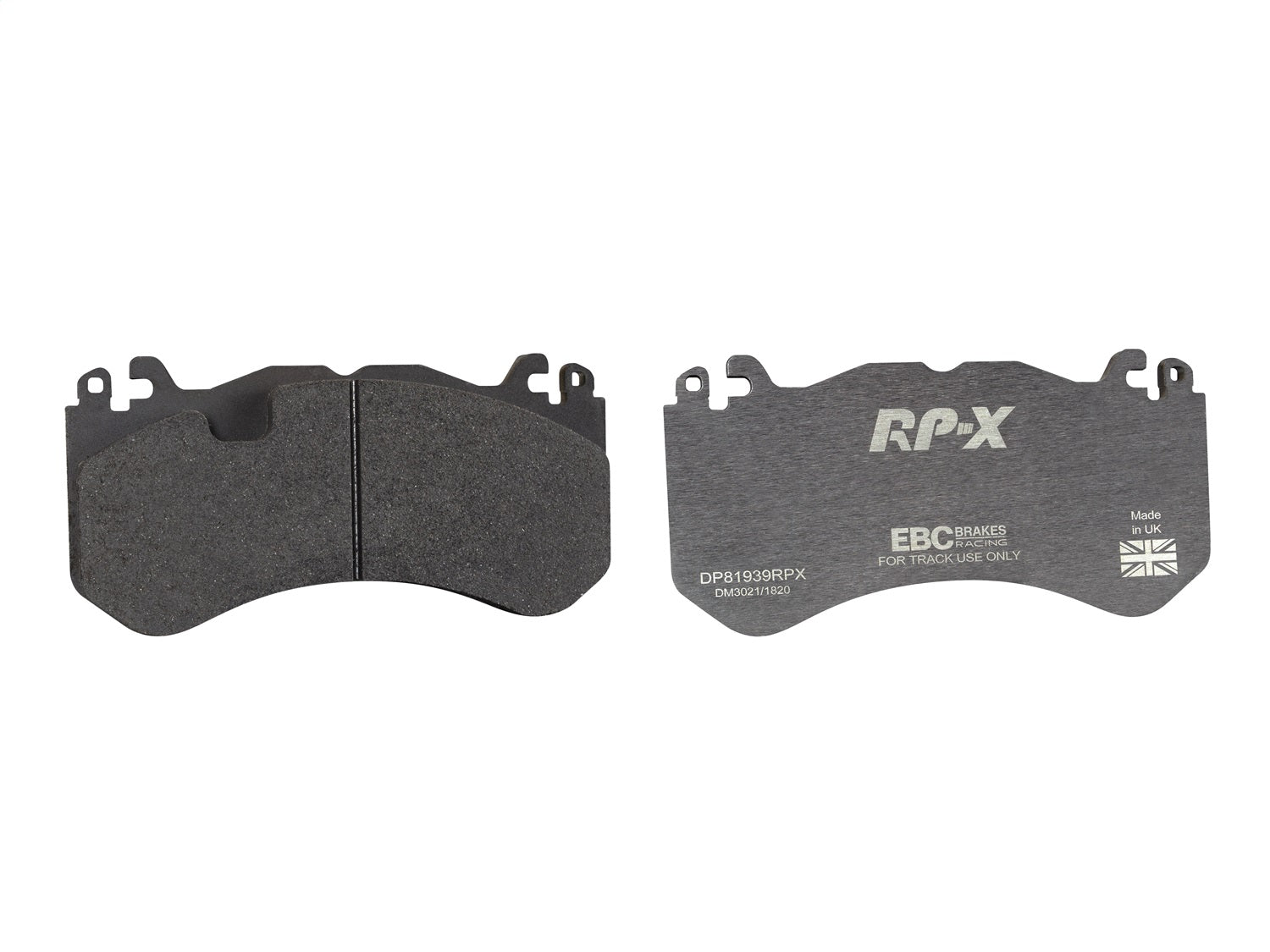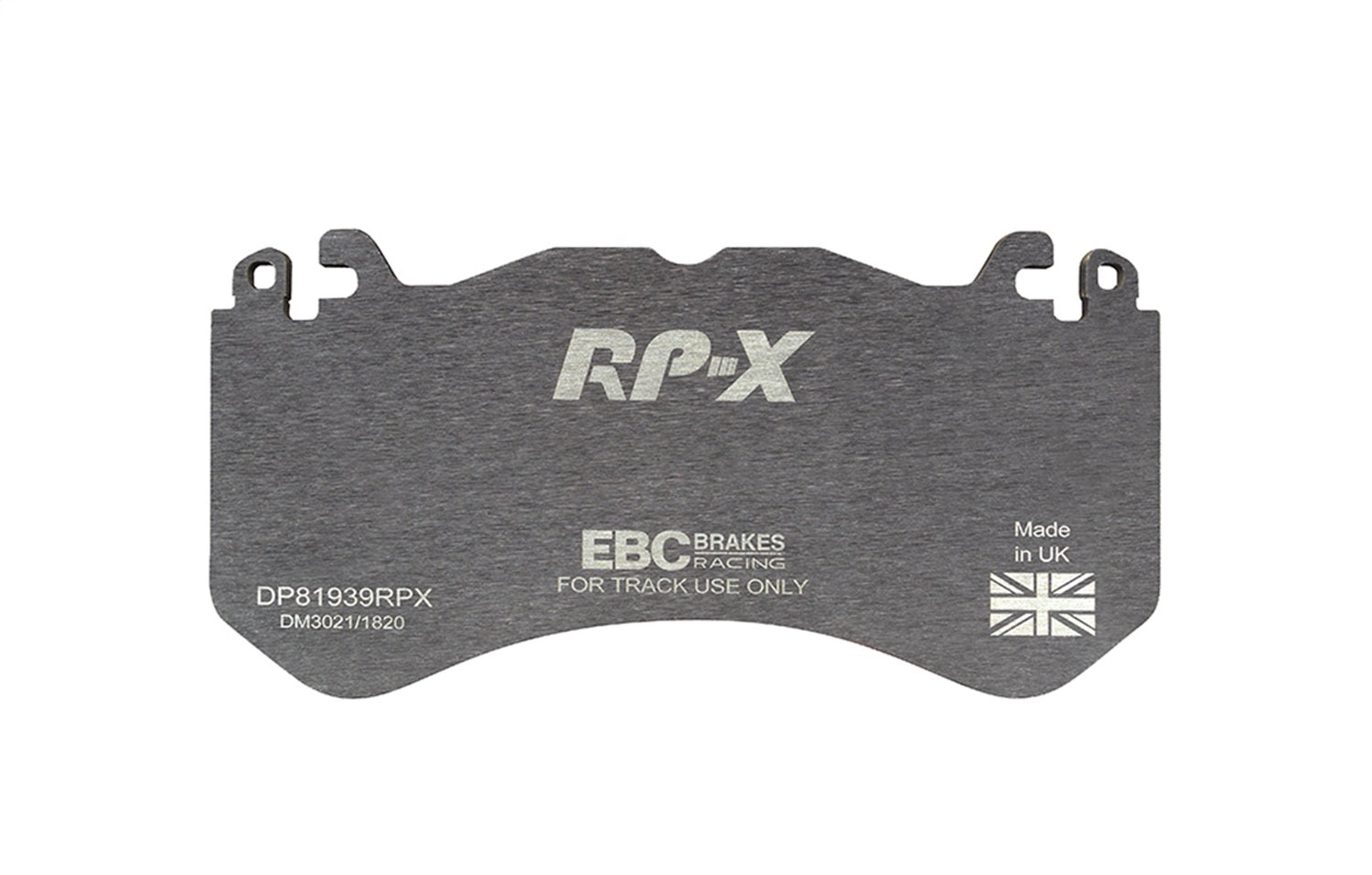 RP-X(TM) Racing Front Brake Pads by EBC(R). EBC Racings RP-X compound is an ultra-high performance track and race pad designed for performance vehicles driven hard on track and for dedicated race cars. RP-X has a very stable friction coefficient of 0.55 mu up to and beyond 850 C, making it an excellent performer for even the most demanding vehicle applications.