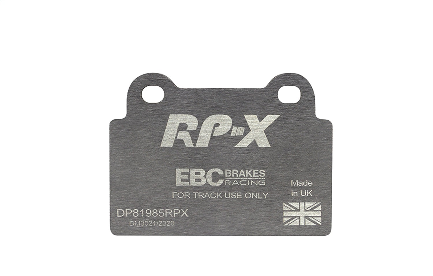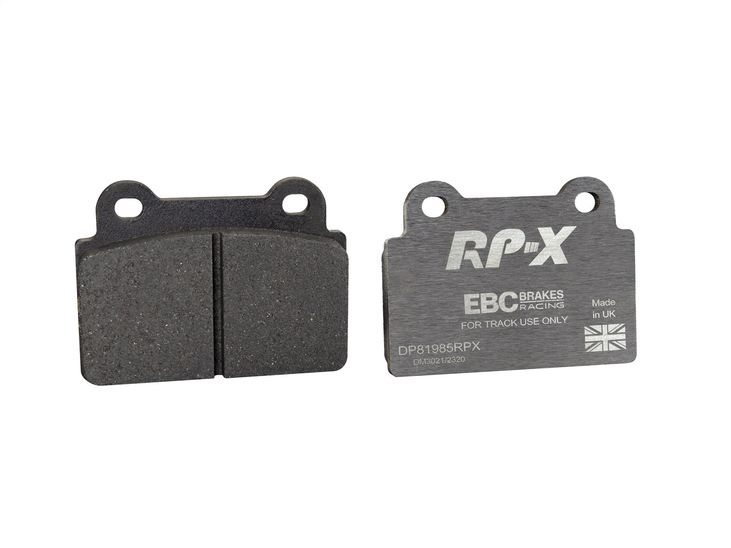 RP-X(TM) Racing Front Brake Pads by EBC(R). EBC Racings RP-X compound is an ultra-high performance track and race pad designed for performance vehicles driven hard on track and for dedicated race cars. RP-X has a very stable friction coefficient of 0.55 mu up to and beyond 850 C, making it an excellent performer for even the most demanding vehicle applications.