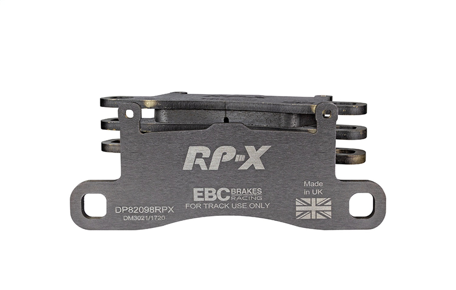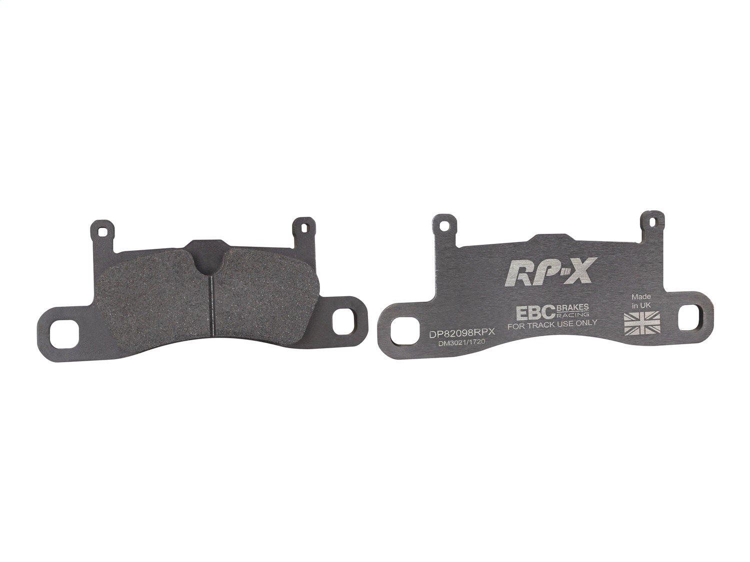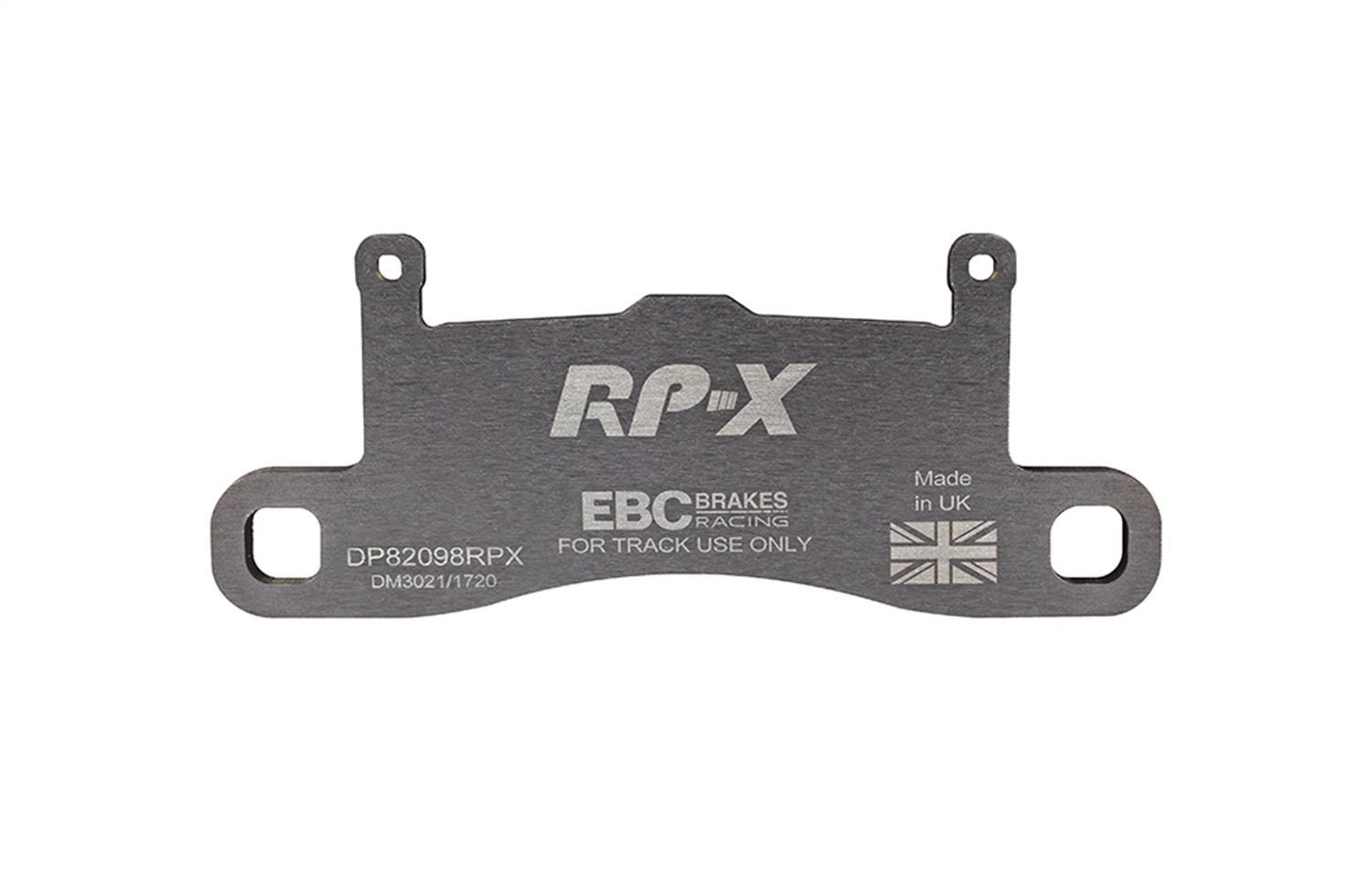 RP-X(TM) Racing Front Brake Pads by EBC(R). EBC Racings RP-X compound is an ultra-high performance track and race pad designed for performance vehicles driven hard on track and for dedicated race cars. RP-X has a very stable friction coefficient of 0.55 mu up to and beyond 850 C, making it an excellent performer for even the most demanding vehicle applications.