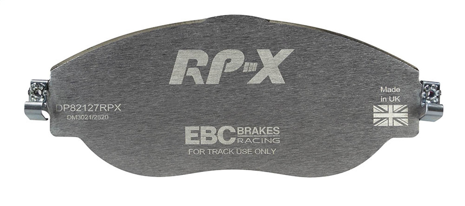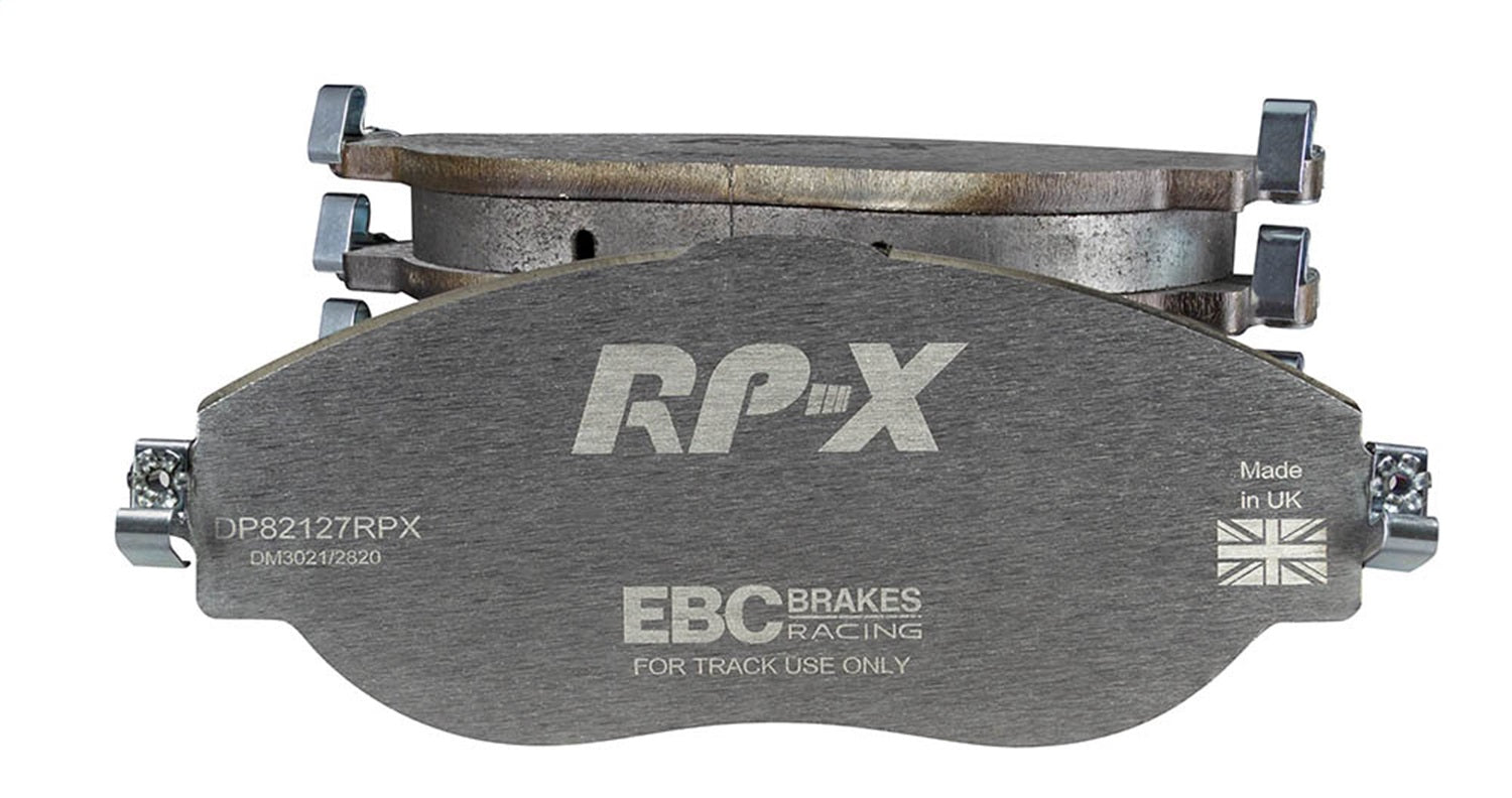 RP-X(TM) Racing Front Brake Pads by EBC(R). EBC Racings RP-X compound is an ultra-high performance track and race pad designed for performance vehicles driven hard on track and for dedicated race cars. RP-X has a very stable friction coefficient of 0.55 mu up to and beyond 850 C, making it an excellent performer for even the most demanding vehicle applications.
