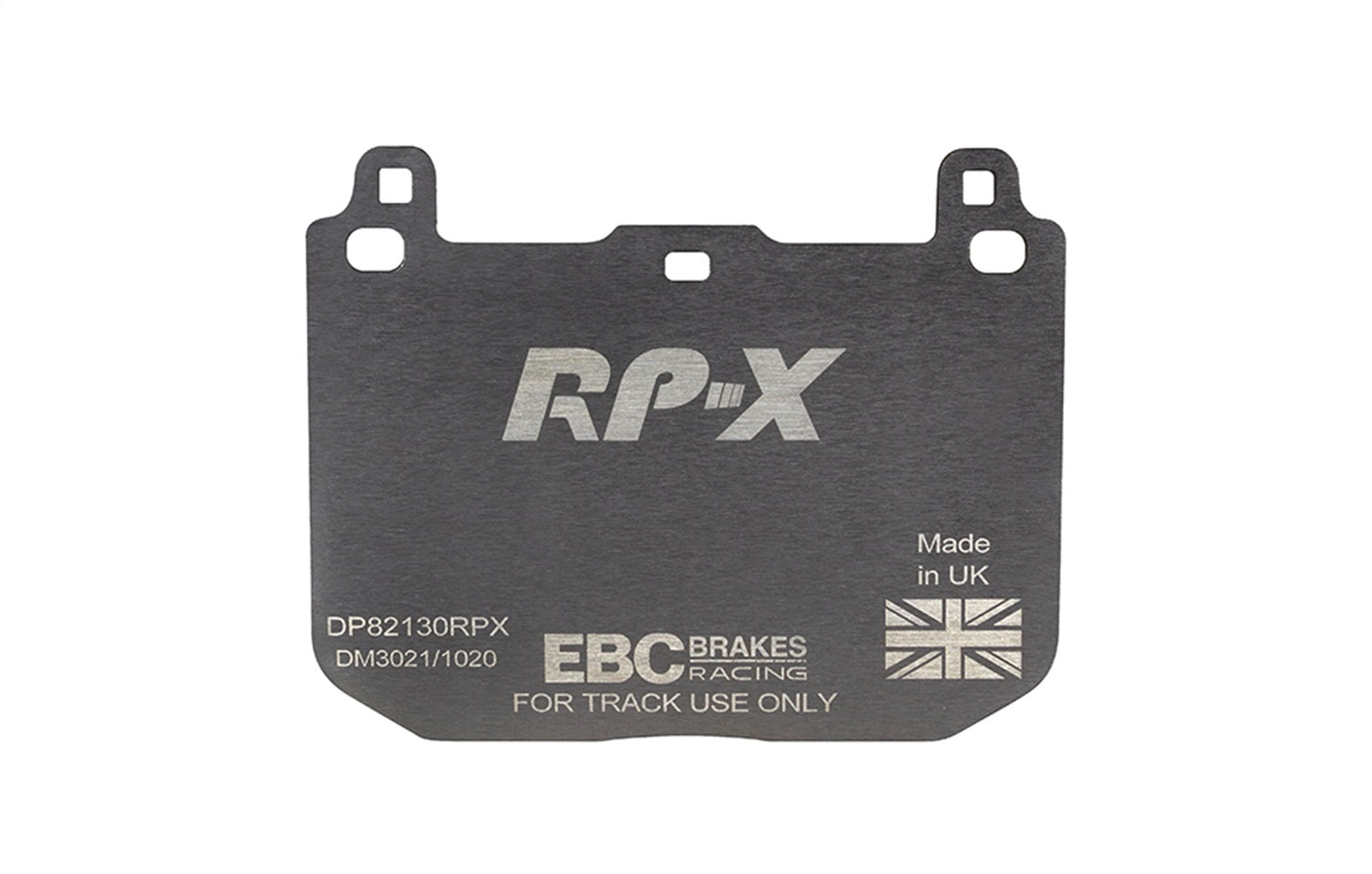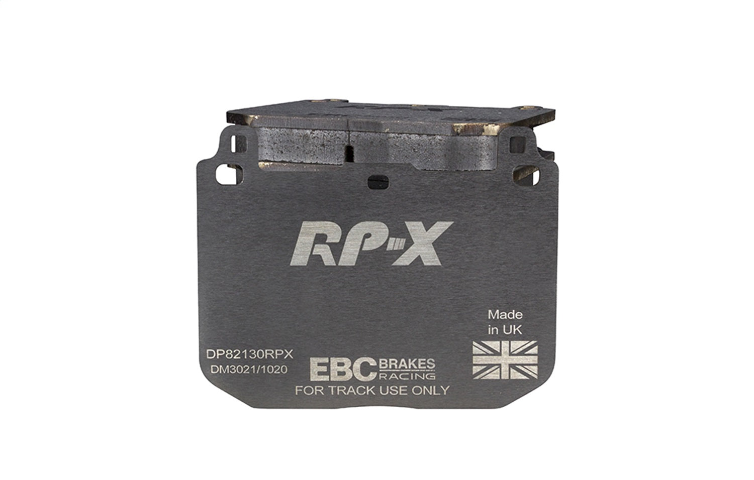 RP-X(TM) Racing Front Brake Pads by EBC(R). EBC Racings RP-X compound is an ultra-high performance track and race pad designed for performance vehicles driven hard on track and for dedicated race cars. RP-X has a very stable friction coefficient of 0.55 mu up to and beyond 850 C, making it an excellent performer for even the most demanding vehicle applications.