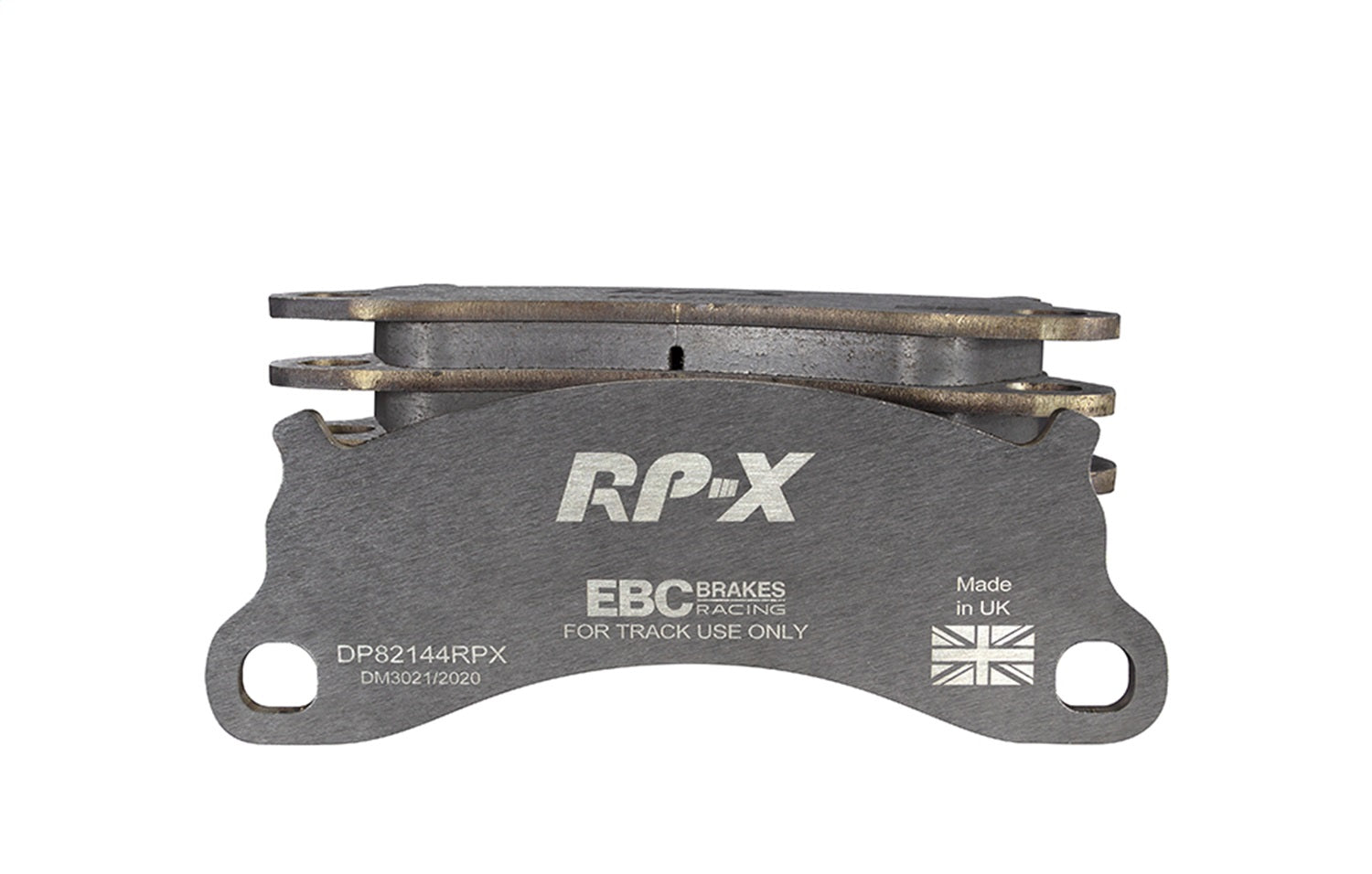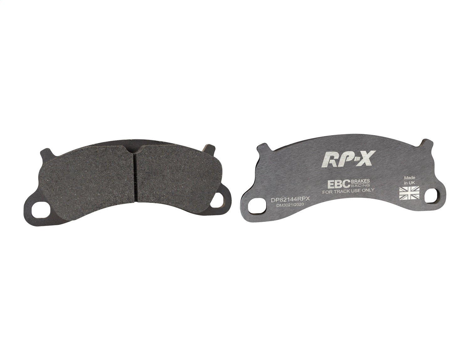 RP-X(TM) Racing Front Brake Pads by EBC(R). EBC Racings RP-X compound is an ultra-high performance track and race pad designed for performance vehicles driven hard on track and for dedicated race cars. RP-X has a very stable friction coefficient of 0.55 mu up to and beyond 850 C, making it an excellent performer for even the most demanding vehicle applications.