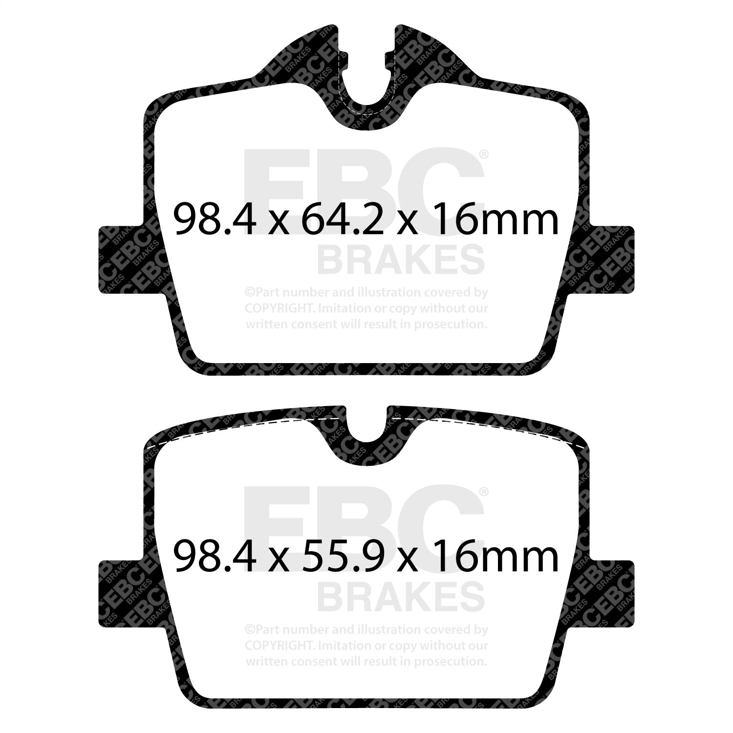 RP-X(TM) Racing Front Brake Pads by EBC(R). EBC Racings RP-X compound is an ultra-high performance track and race pad designed for performance vehicles driven hard on track and for dedicated race cars. RP-X has a very stable friction coefficient of 0.55 mu up to and beyond 850 C, making it an excellent performer for even the most demanding vehicle applications.