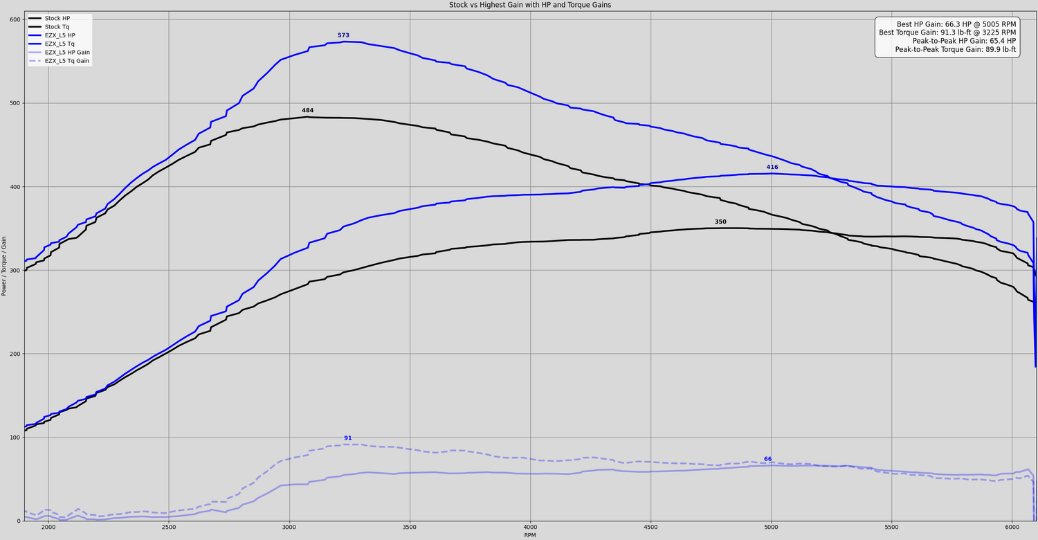 - Adds up to 65hp/90tq at peak to 3.5L and 30hp/51tq for 2.7L, 45hp/68tq for Raptor