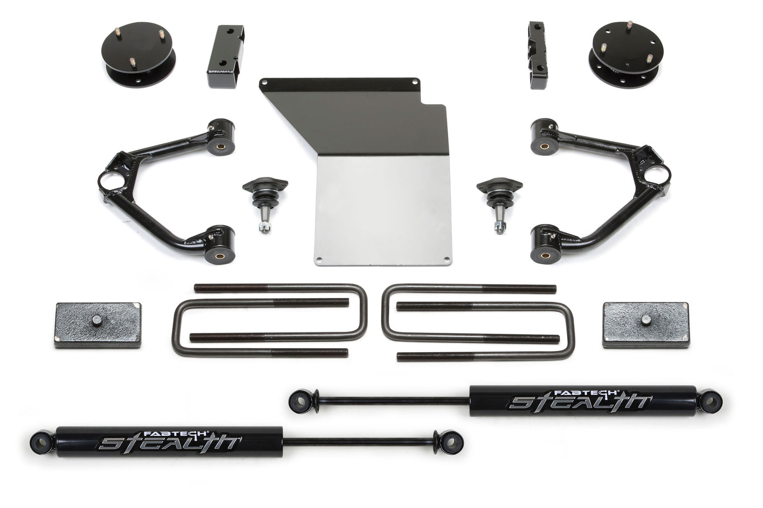 Fabtech K1070M - 14-18 GM K1500 w/OE Alum. UCA 4in Budget UCA System w/Rear Stealth Shocks