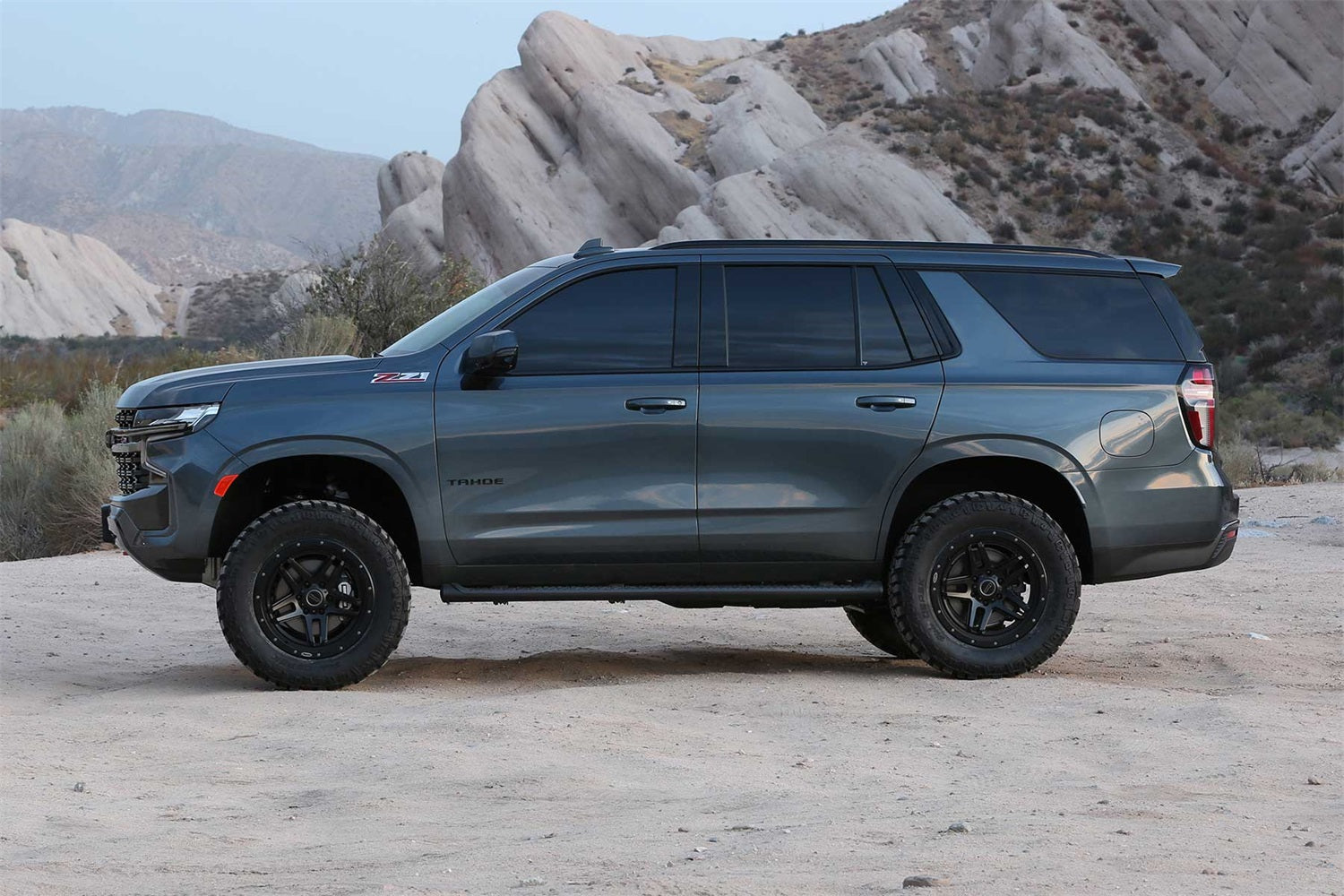 This high quality suspension has been designed to upgrade GM 1500 SUV's with standard suspension for increased strength and a balanced compliant ride for both on and offroad. The front suspension receives Fabtech's heavy duty Uniball Upper Control Arms and Dirt Logic 2.5 Coilover shocks. The Fabtech arms are vastly superior to the stock arms providing strength and longevity to the vehicle. They are constructed of 1.25 in. OD, .120 in. wall chromoly tubing with 1 in. FK Stainless PTFE lined Uniballs that attach to the factory GM steering knuckle without drilling. The replacement UCA's have been designed to work in conjunction with Fabtech's Stainless Steel Dirt Logic 2.5 Coilover shocks for a complete front suspension system upgrade. The Dirt Logic 2.5 Coilovers feature cold wound coil springs for a smooth ride with the ability to tackle aggressive offroad terrain. The rear receives extended length upper link arms to allow for increased travel without bind. The geometry of these links provides the proper alignment to the rear independent suspension with the new ride height. As with the front, the rear also receives stainless steel Dirt Logic 2.5 Coilover shocks for a superior ride quality. This 3 in. lift kit system is perfect for those that want increased suspension performance with a low lift height. A great choice for daily drivers that overland and hit the trails on weekends.