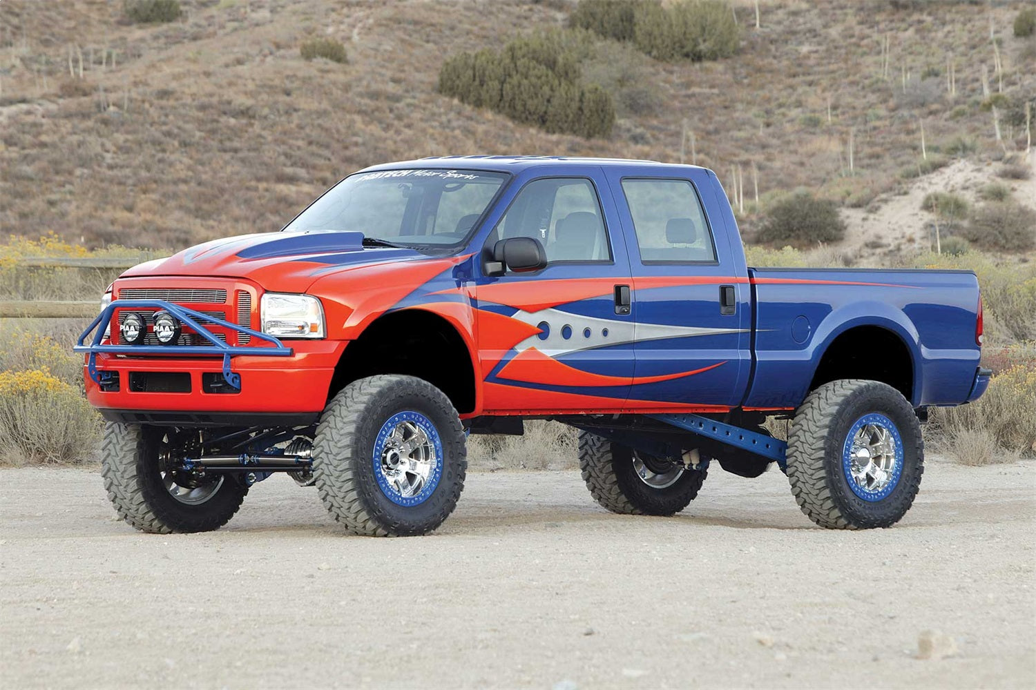 At the top of our Super Duty line is our famous 4 Link System that provides unsurpassed articulation and wheel travel. Large 2in OD heavy wall links feature race style 1in Uniballs for superior strength. Thick 1/4in steel brackets secure the 4 Links to the frame without cutting or welding. This 4 Link system includes our Dirt Logic 4.0 Stainless Steel Coilover shocks for the front, and an add-a-leaf with a block & u-bolt kit for the rear. Also included are Billet Sway bar links, Trac Bar relocation bracket, Pitman Arm and more. Includes rear 2.25 Dirt Logic Stainless Steel shocks.