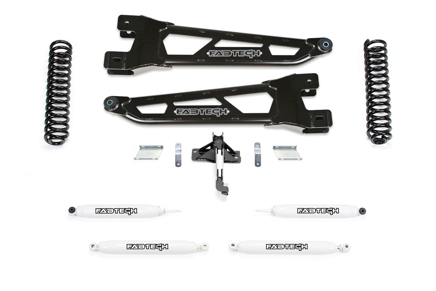 Fabtechs 2.5 in. Radius Arm lift kit has been built for the Ford Super Duty to handle the on and offroad demands of the truck enthusiast. This system is a heavy-duty upgrade to the factory suspension and will provide additional strength to the vehicle. This Super Duty lift kit is perfect for the enthusiast looking to run oversized tires and wants additional wheel travel for offroad use. With the large Super Duty wheel well openings and this quality 2.5 in. lift kit, you can run 35 in. tall tires with ease. This lift kit is backed by our free 5-year 60,000 mile powertrain warranty.