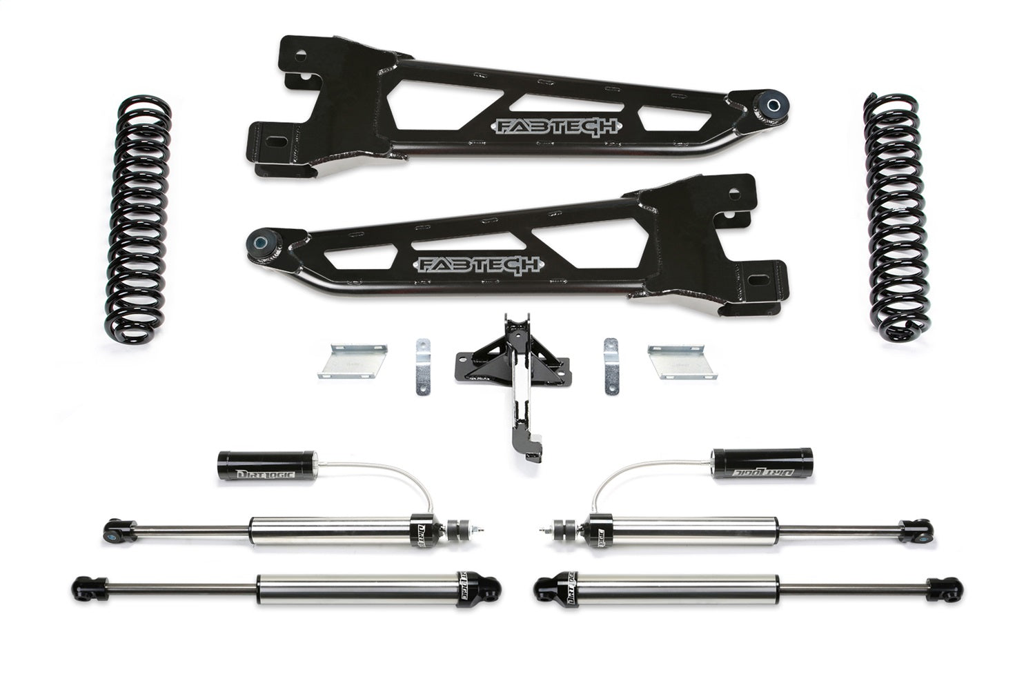 Fabtechs 2.5 in. Radius Arm lift kit has been built for the Ford Super Duty to handle the on and offroad demands of the truck enthusiast. This system is a heavy-duty upgrade to the factory suspension and will provide additional strength to the vehicle. This Super Duty lift kit is perfect for the enthusiast looking to run oversized tires and wants additional wheel travel for offroad use. With the large Super Duty wheel well openings and this quality 2.5 in. lift kit, you can run 35 in. tall tires with ease. This lift kit is backed by our free 5-year 60,000 mile powertrain warranty.