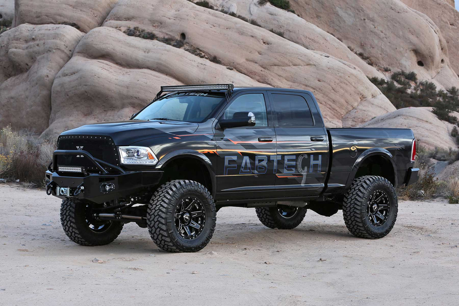 Fabtech's new Coil Spring Suspension Systems for late model Ram 2500 trucks will provide a smoother on road ride than factory with the ability to handle heavy loads and rough offroad use. As an industry exclusive Fabtech utilizes front coil springs with a straight spring design and patent pending angled lower mounts that produces a very smooth ride compared to stock. The factory springs are a high rate bowed style that naturally rides stiff with an overactive response to varying road conditions. Fabtech's straight design has a lower spring rate that provides a smoother ride yet still retains the factory carrying capacity of the vehicle when required. No other Ram suspension system can offer this. The Fabtech rear coil springs on 2500's are a dual stage design. The first stage provides a supple ride quality when unloaded. The second stage provides the ability to handle factory carrying capacity loads when required giving the best of both worlds. The combination of Fabtech's front straight coil springs and rear dual stage coil springs will provide a noticeable ride quality improvement of the vehicle compared to stock.