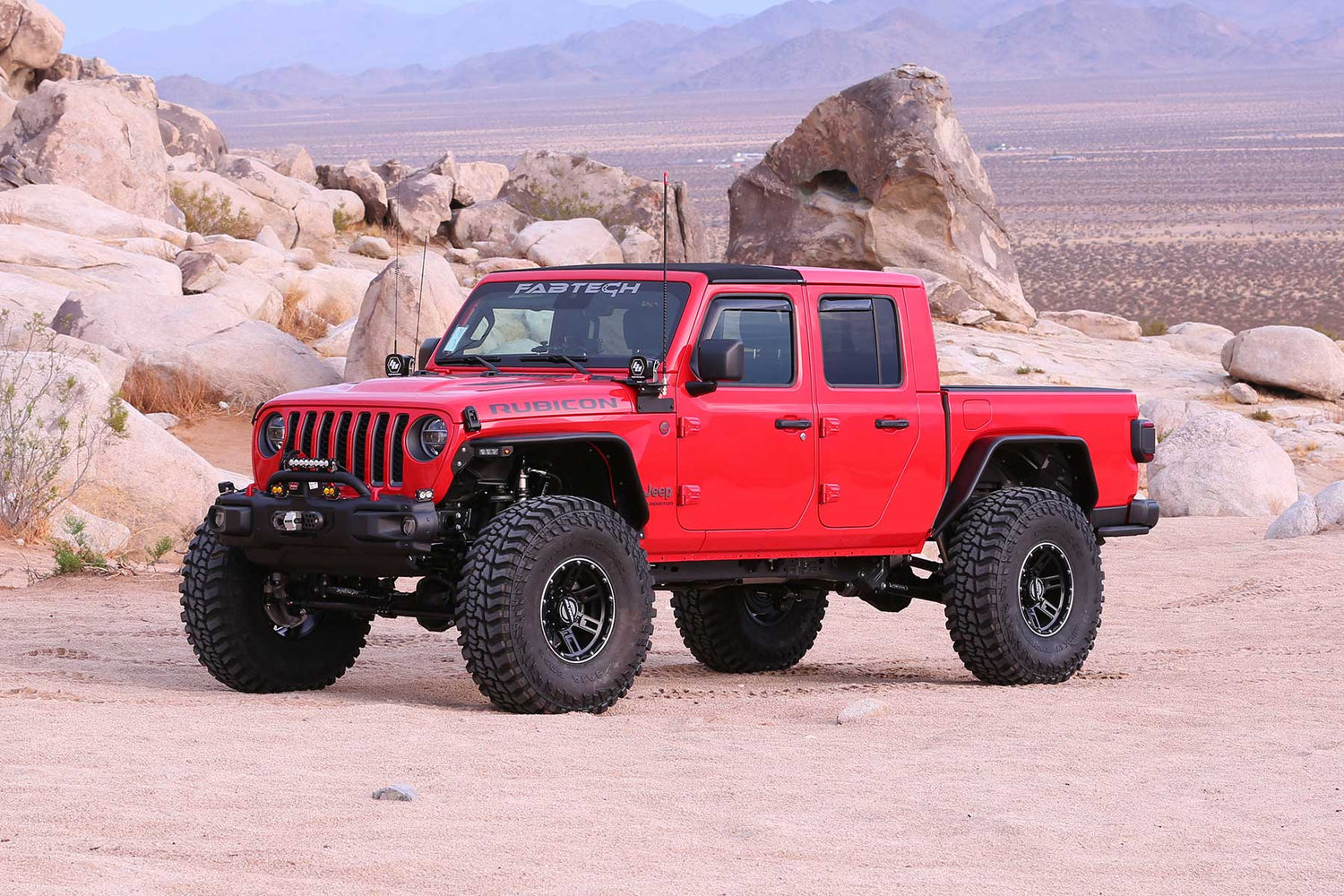 Fabtechs Jeep Crawler long arm system with the Dirt Logic 2.5 Coilover Conversion is the pinnacle of Jeep suspension performance. The ride quality of this kit is outstanding with the ability to endure severe offroad use that is suited for core rock crawlers, overlanders or for those that just want a plush ride. The conversion includes heavy duty 1/4" thick steel bracketry that attaches to the side of the Jeep coil spring bucket and to the frame for stout mounting of the Dirt Logic Coilovers. The Dirt Logic 2.5s Coilovers are the only all stainless steel body shock on the market. This is the most corrosive resistant shock there is. The ride quality of these Coilovers are vastly superior to a coil spring and shock configuration. This is the single biggest improvement you can do to your Jeep Gladiator to enhance the ride quality both on and offroad. A key part of the Crawler system is the link arm geometry. The location of the link arms to the frame is critical in providing superior handling throughout the travel range. Fabtech has found the sweet spot geometry for the link arms that provide a superior driving Jeep long arm system compared to all others on the market. Front link arms are mounted to a full width crossmember that spans frame rail to frame rail. This crossmember is a key in not only in mounting the Links arms at the correct geometry but it adds critical strength to the Gladiator frame for hard offroad use. Rear links attach to the factory frame and axle brackets for an easy install. The Fabtech lower Link Arms are massive and built of 2" OD .313" thick wall tubing that is guaranteed not to bend. Upper and lower Link Arms includes the Fabtechs legendary 5 Ton joints that come with lifetime guarantee of never wearing out. They are superior for offroad use with a smooth and quiet operation on the street. Each Fabtech component has been designed with specific features and benefits that create this quality suspension system. FEATURES - COILOVER CONVE
