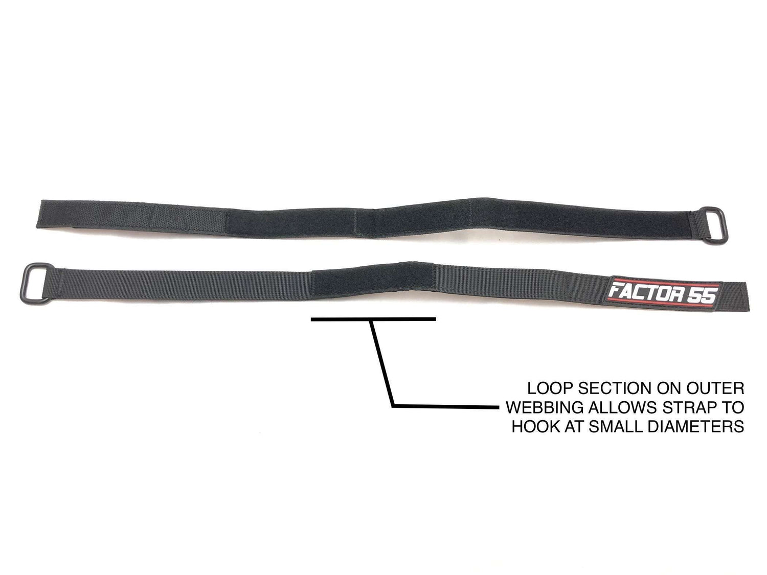 The perfect way to store your miscellaneous straps, ropes, and gear. The Factor 55 Strap Wraps feature hook and loop closure and a heavy duty powder coated steel ring to secure gear in various sizes.