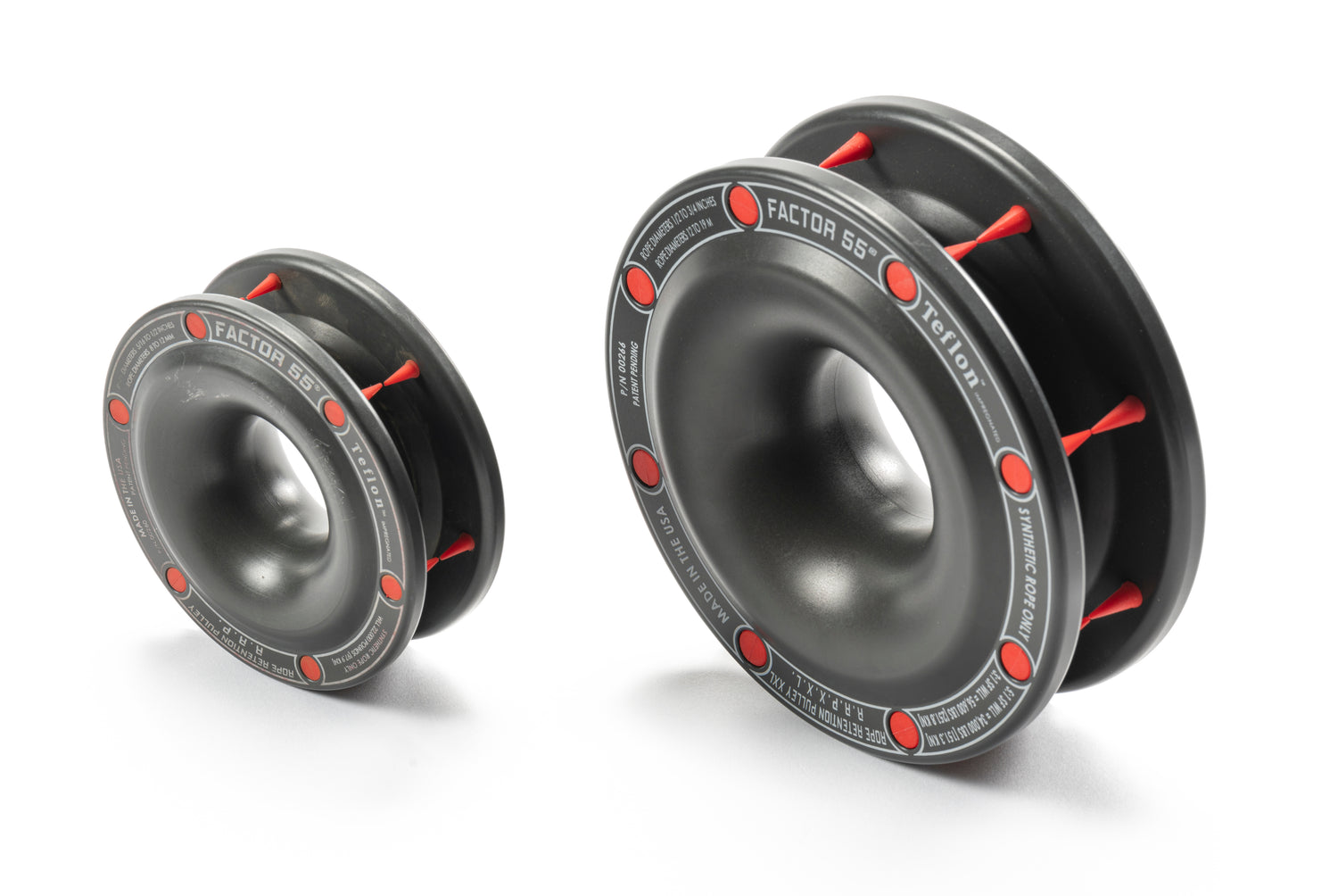 A lightweight and compact alternative to traditional heavy snatch blocks/pulleys, the RRP XXL can be used to increase pulling power or redirect the winch line. The RRP XXL is for use with synthetic rope only and is to be used in conjunction with a non-coated soft shackle. During momentary slack, the rope retention rubber fingers prevent the winch rope from escaping the pulley groove. The oversized hole radius provides a smooth surface and keeps the soft shackle from rubbing on the edges of the RRP XXL. The friction surface has been treated with Teflon to increase slickness and heat dissipation.