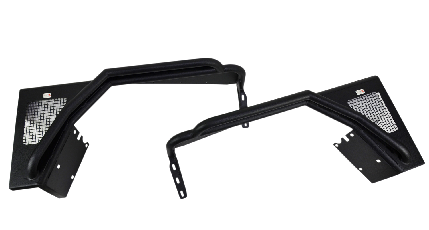 The Fishbone Offroad Front Tube Fenders includes a pair of Tube Fenders that have a perforated side panel to allow your TJ to release under hood heat. Fenders are made from steel and are powder coated black for a clean look.