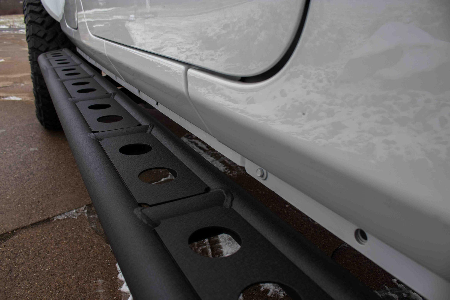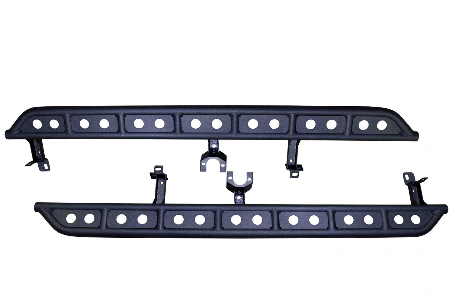 These mount to the underside of the Jeep using 3 mounting locations and provide you with protection on the trail and a step to help the family get into the vehicle.