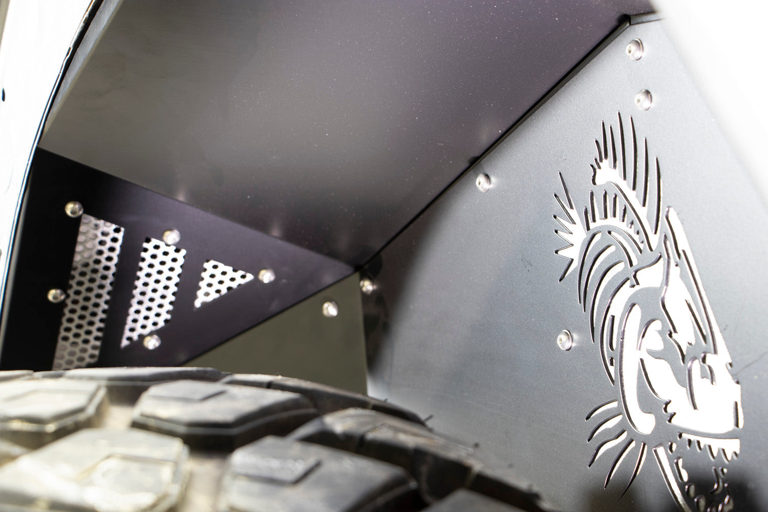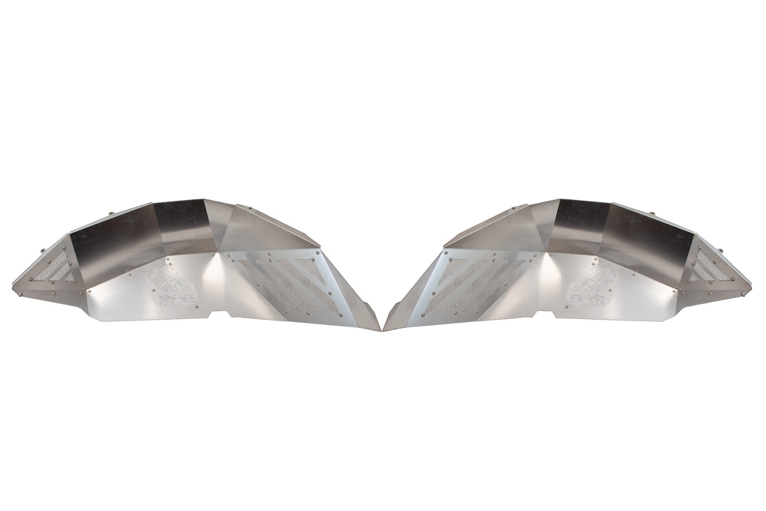 If you have Tube Fenders, you need a set of Aluminum Inner Fenders to finish the look. Once installed these offer protection from rocks and debris entering the engine compartment.
