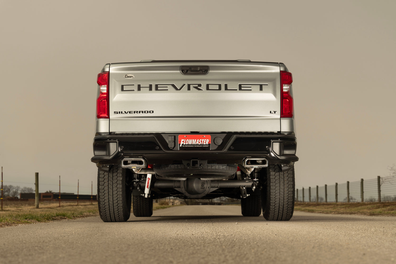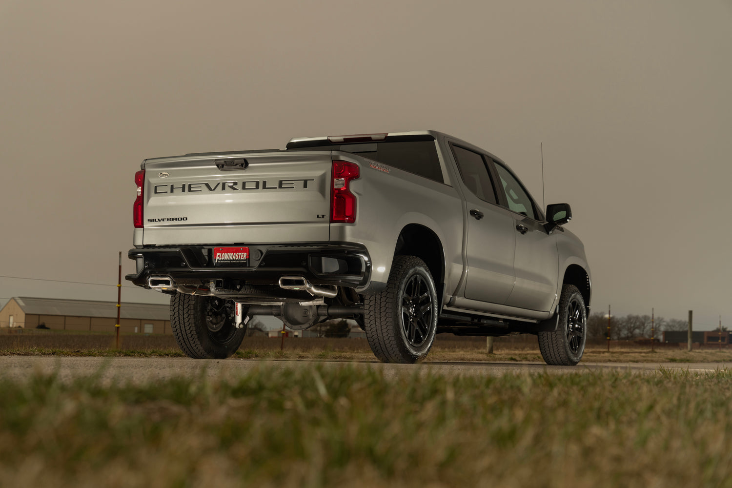 Flowmaster's® FlowFX® Cat-back exhaust system for the 2024 to 2026 GM 1500 trucks with the 6.2-liter engine is a great way to customize your Silverado or Sierra to your personality. This performance exhaust system fits both 2/4 Wheel drive models and is manufactured from 409 stainless steel for years of trouble-free service and performance. Features include a 3.50-inch inlet pipe leading into a specialty tuned FlowFX style muffler for great sound and maximum performance. This cat-back system has dual 2.5-inch mandrel-bent tailpipes that exit in the bumper cut-out locations and retains the factory exhaust bezel for a clean look. Included in this cat-back system is active valve control with an integrated turndown. This allows you to control the factory valve from the dash with the different drive modes for full control of your sound level. Run the valve closed in the Normal drive mode, or open the valve in Sport or Off-Road mode for maximum sound. Max dyno gains of 15 hp and 13 lb-ft at the rear wheels deliver power you can feel. These systems use all the factory hanger locations and connections for an easy installation that you can do at home. Kit include installation instructions and all necessary hardware. Backed by Flowmaster's Lifetime Limited Warranty.