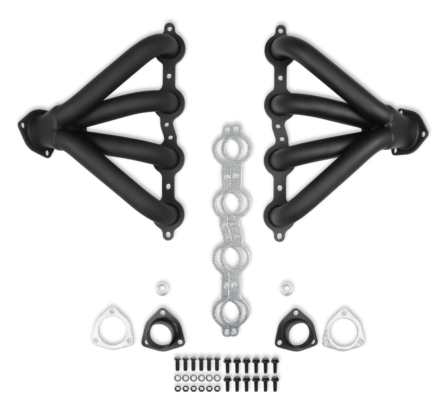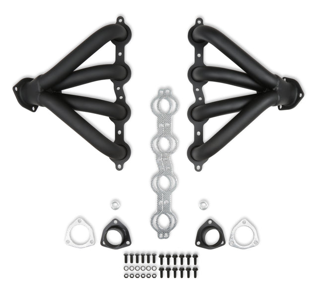 Tight Fit Block Hugger Header; For Use w/LS Motors; 1.625 in. Primary Tube; 2.5 in. Collector Tube; Black;