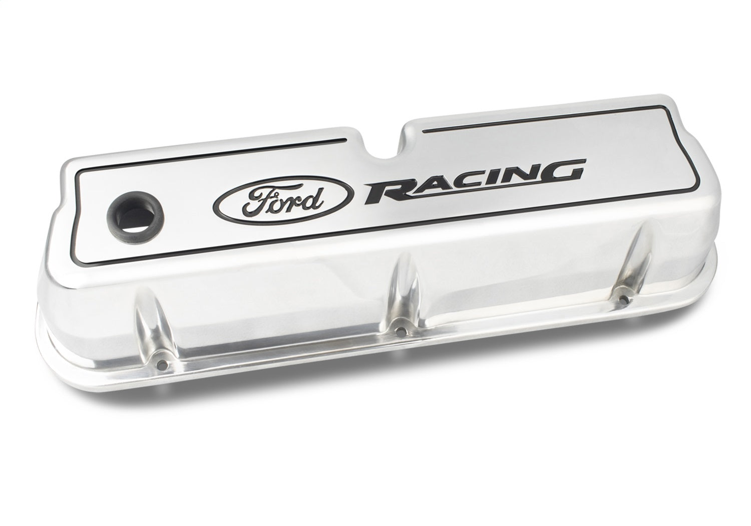 Valve Cover; Die-Cast Aluminum; Polished Finish; Ford Racing Logo;