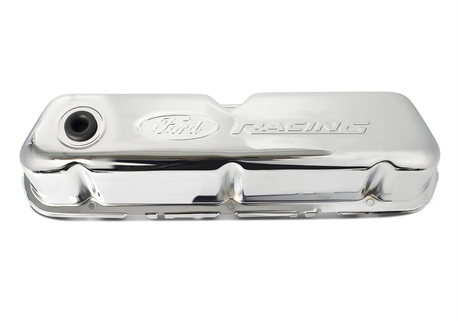 Valve Cover; Stamped Steel; Chrome; Embossed Ford Racing Logo;