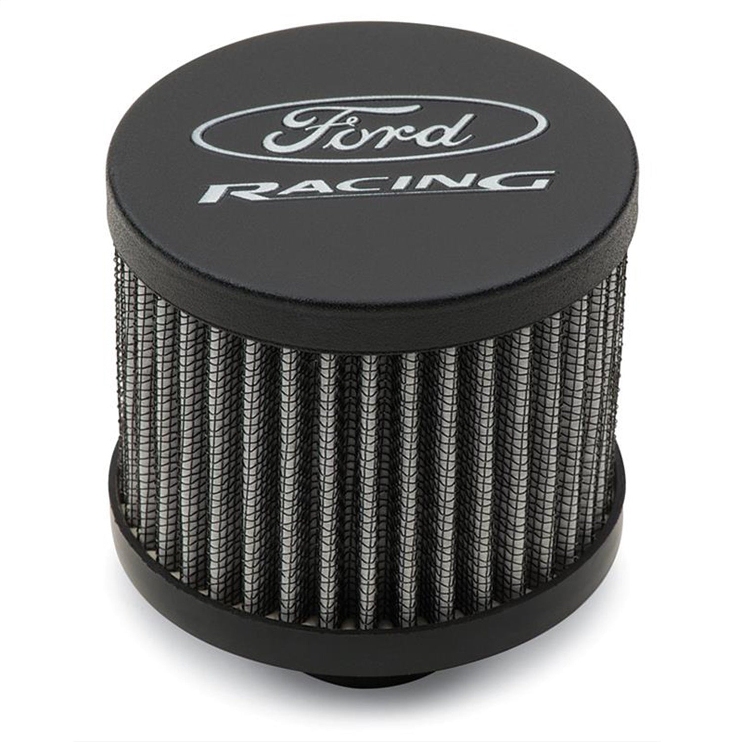 Valve Cover Breather; Black Crinkle Finish; Unshielded; 3 in. Dia.; Fits 1.25 in. Holes; Ford Racing Logo;