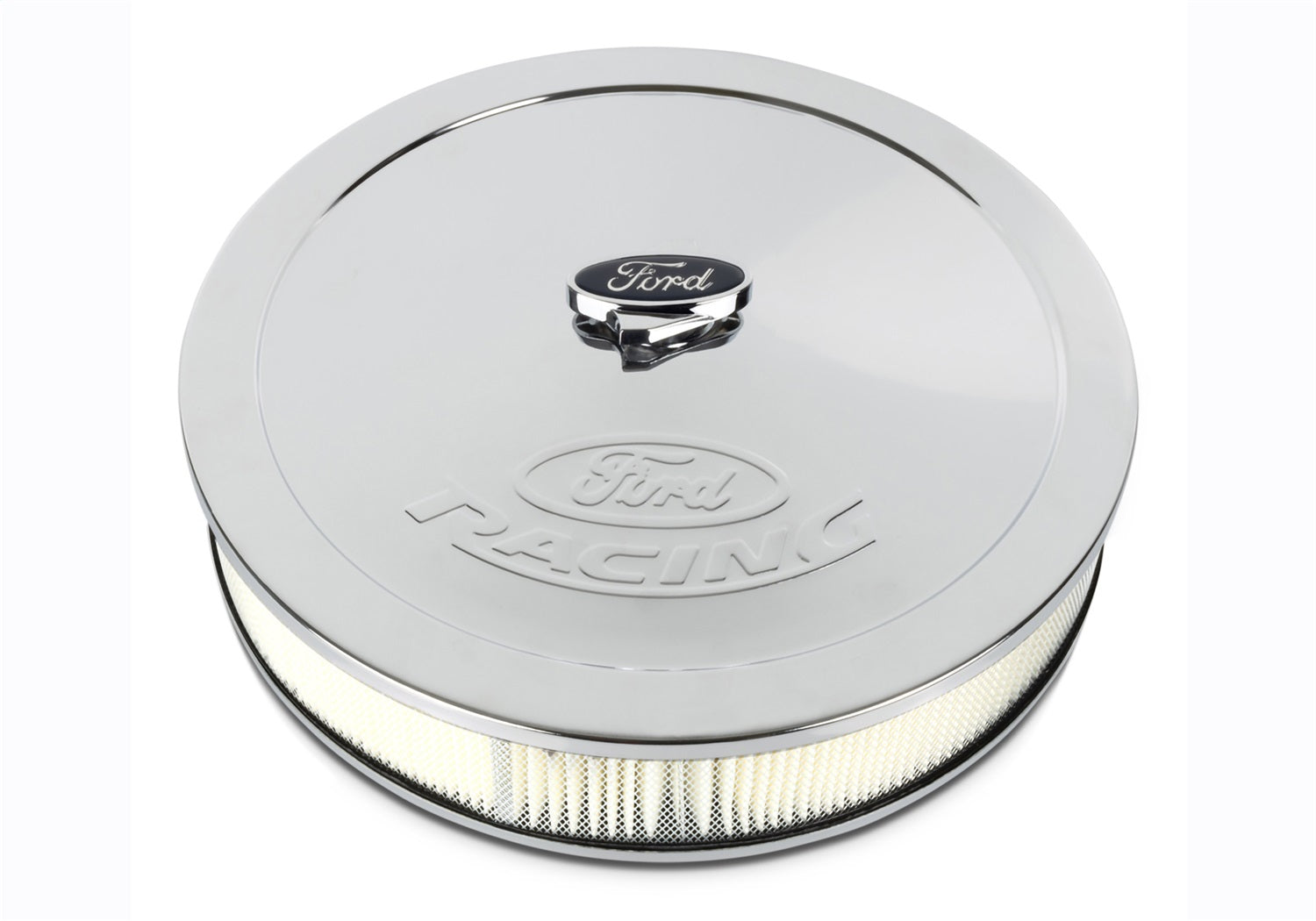 Air Cleaner Assembly - 13 in Round - 2.625 in Element - 5-1/8 in Carb Flange - Dropped Base - Ford Racing Logo - Steel - Chrome - Kit