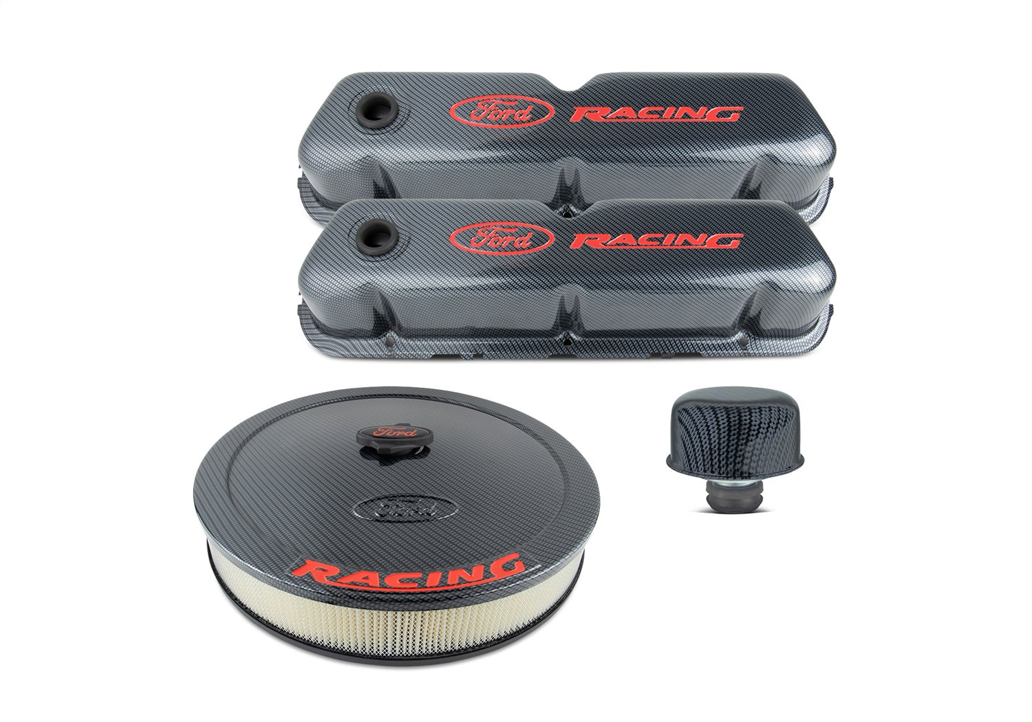 Complete Dress Up Kit; Carbon Finish; Incl. Valve Cover/Air Cleaner; Ford Racing Logo;