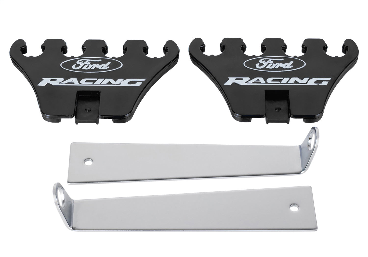 Spark Plug Wire Loom - 4 Wire - Valve Cover Mount - 7-8.5 mm - Chrome Bracket Included - Ford Racing Logo - Plastic - Black - Clip Style - Small Block Ford - Pair