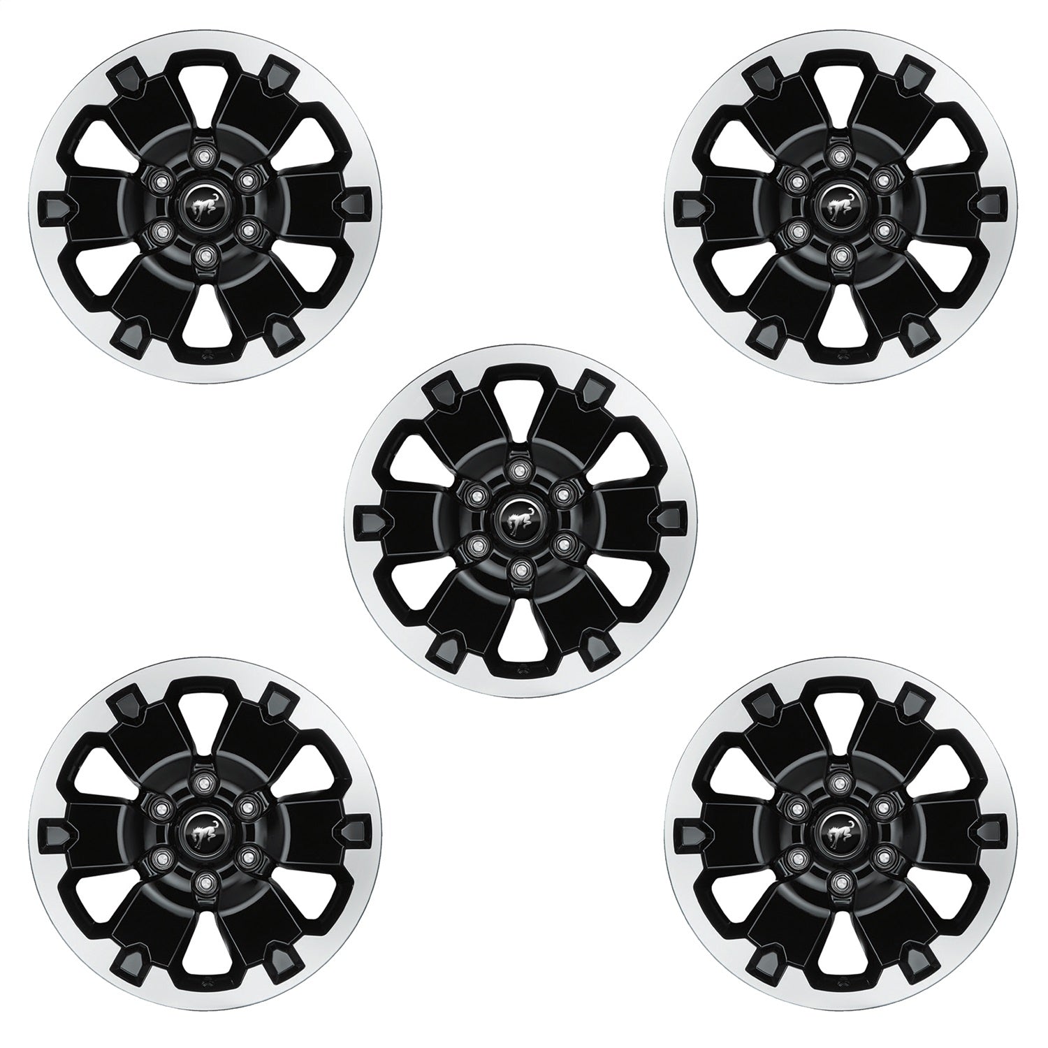 Wheel Kit; 18 in. x 8 in.; 55mm Offset; Set of 5; Incl. TPMS Sensor/Bronco Center Cap; Black Machined Face w/Gloss Black Finish;
