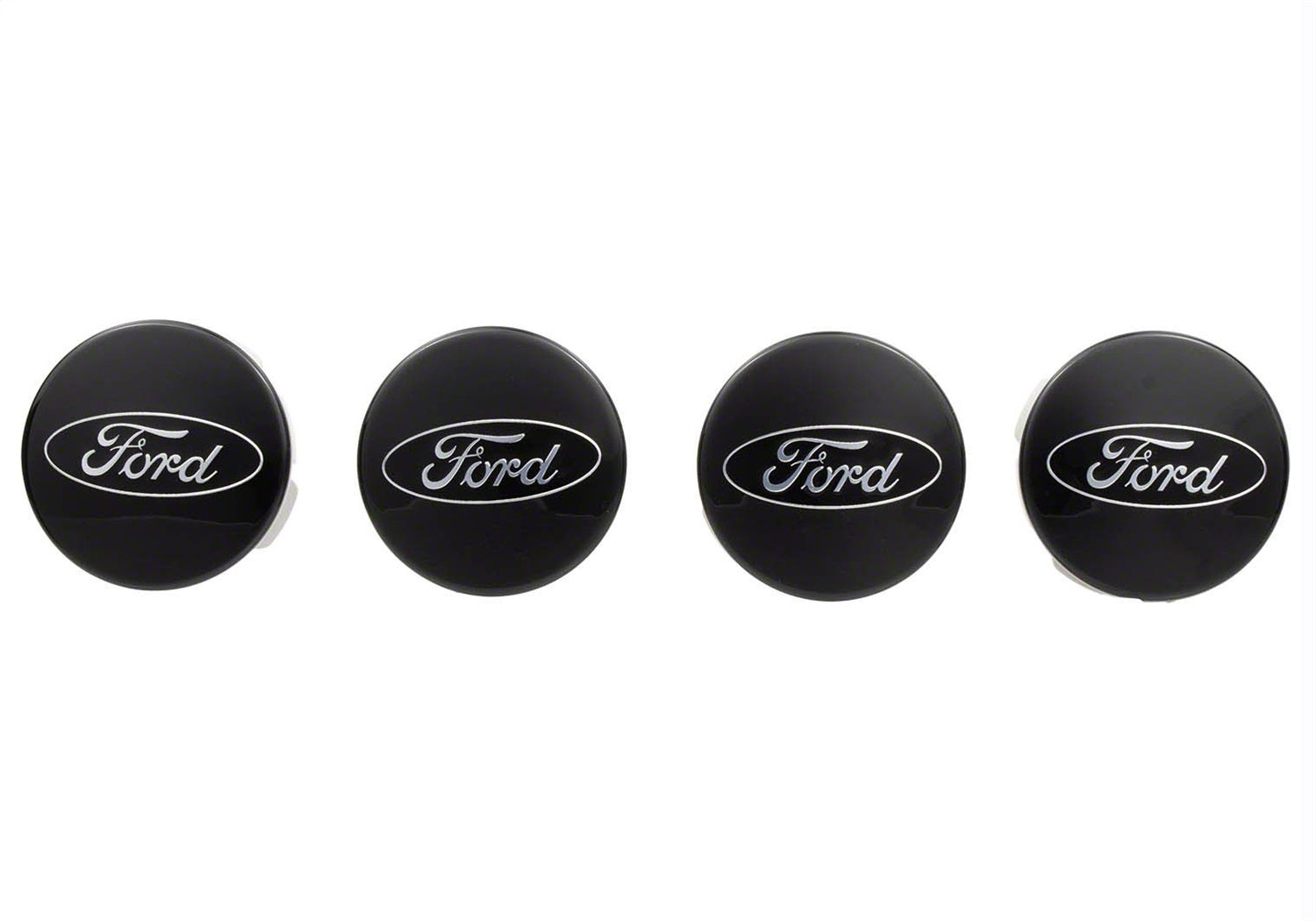 Wheel Center Cap Kit; Chrome Ford Logo Gloss Black Background; Set Of 4;