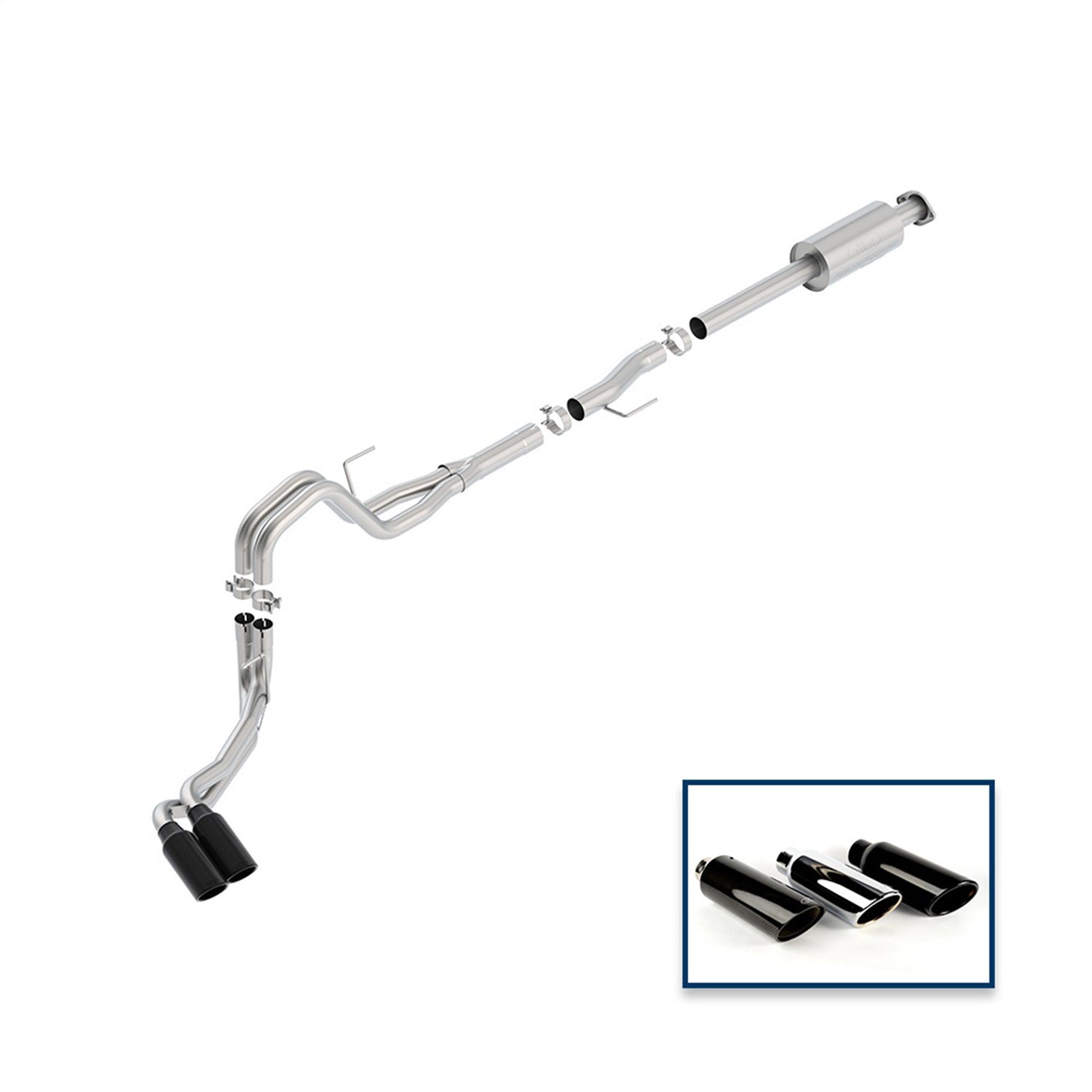- Dual Rear Exit w/Chrome Plated Stainless Steel Tips
