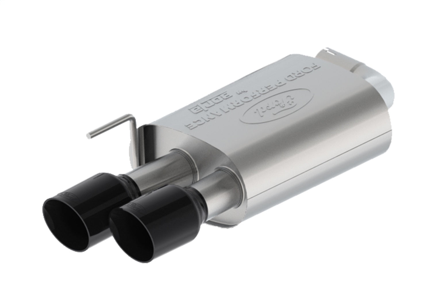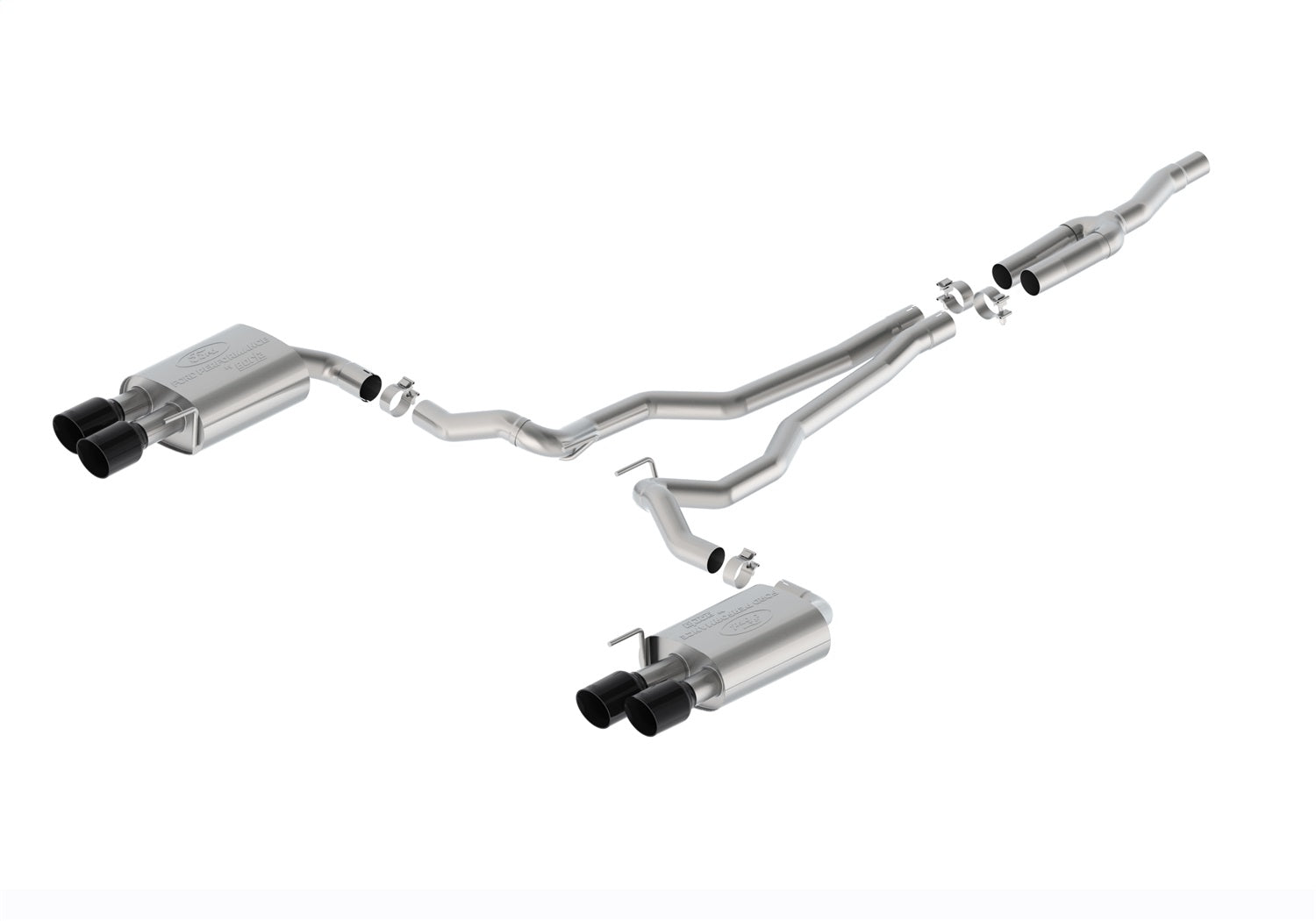 Ford Racing has partnered with industry leader Borla(R) Exhaust to offer the first in a series of Ford Racing by Borla(R) systems for the new 2015 Mustang. This cat-back system is constructed from ultra-smooth mandrel bent 300-series stainless steel tubing that is designed and fit to Ford Racing specs. This 2.5 in. cat-back exhaust system will give you an aggressive muscle car sound. This cat-back exhaust system with integral X-pipe bolts directly to the stock factory catalytic converters, making your Mustang 100% emission compliant. These tuned stainless steel mufflers with 4 in. chrome-plated stainless steel tips not only sound great but look great too.