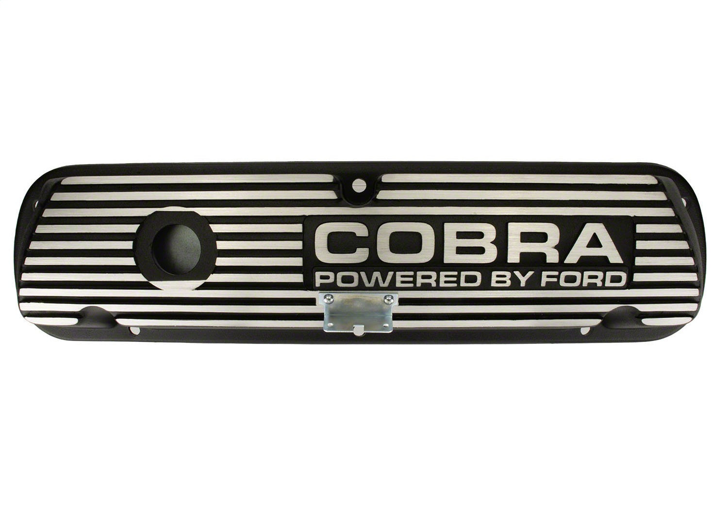Valve Cover; Die-Cast Aluminum w/Baffle; Black Satin Finish; Cobra Logo;