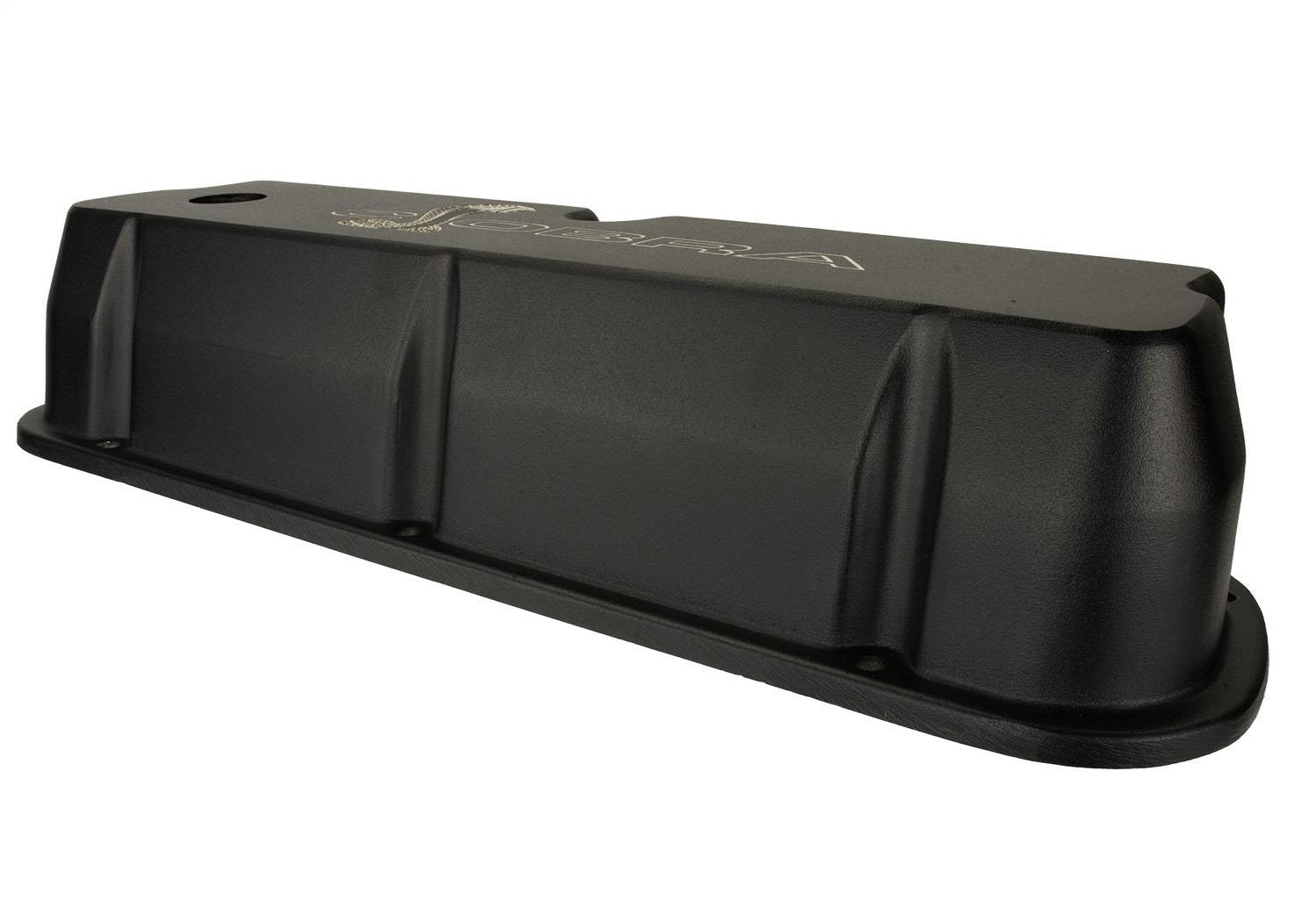 Valve Cover; Die-Cast Aluminum w/Baffle; Black Satin Finish; Cobra Snake Logo;