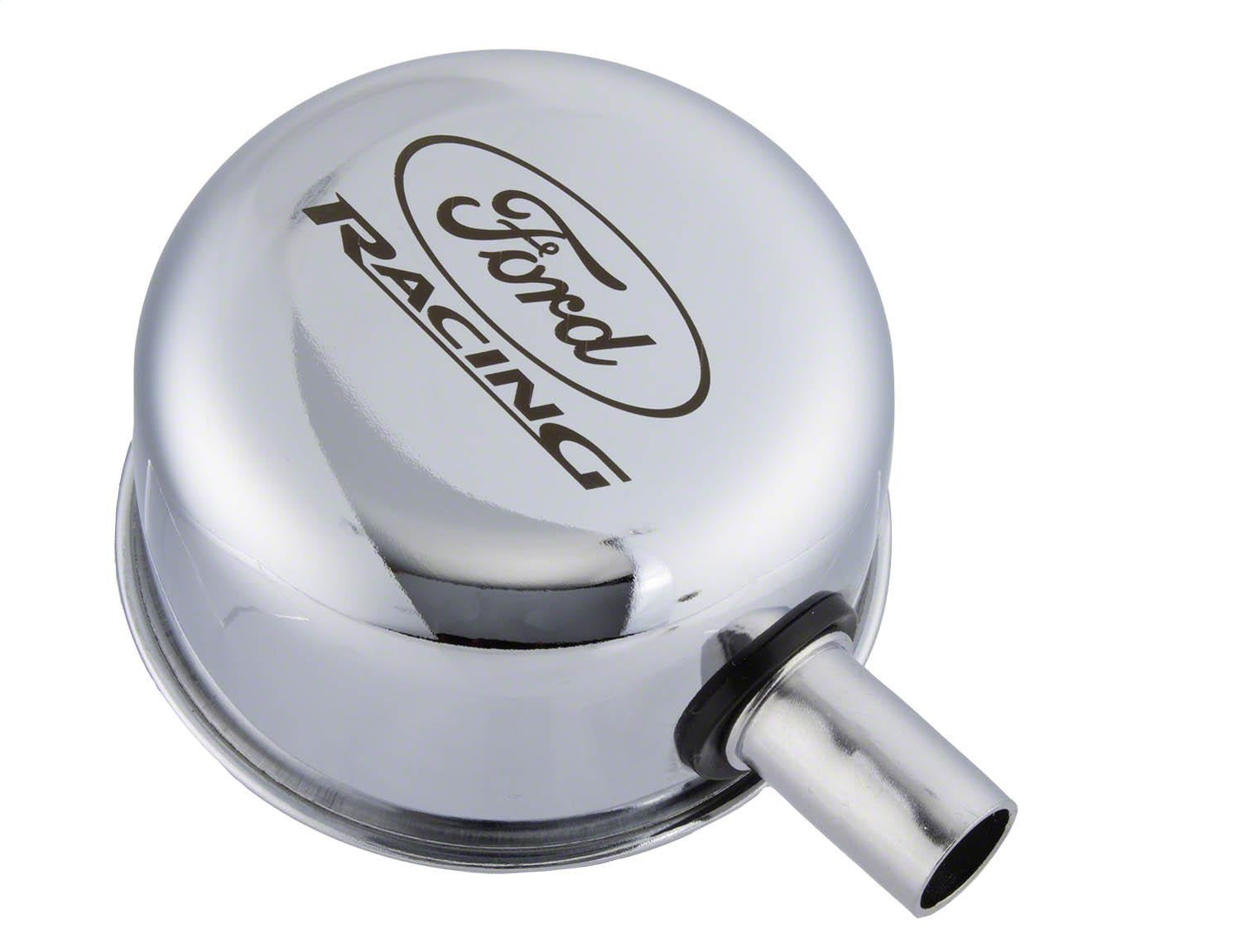 Oil Breather Cap; Closed Crankcase Design; Chrome Finish w/Ford Racing Logo;