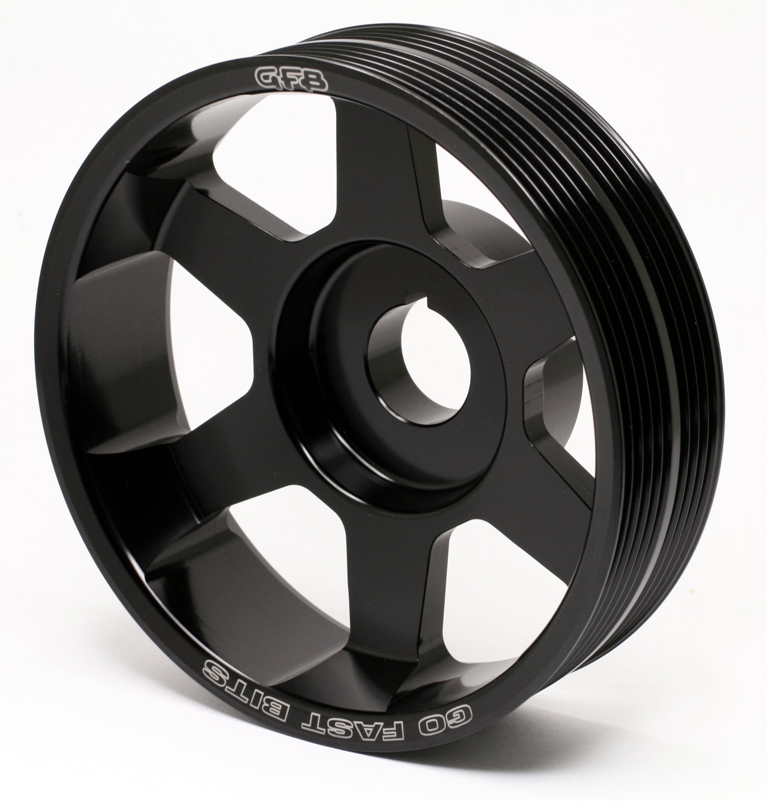 GO FASTER ? ADD LIGHTNESS, GFB's Lightweight Pulley Kits offer sharper throttle response and faster acceleration by significantly reducing the rotating mass at the engine. Made from a single billet of 6061-T6 aluminium, then precision CNC machined to exacting tolerances, our pulley kits offer an exceptional bolt-on performance advantage without the need for supporting mods or tuning