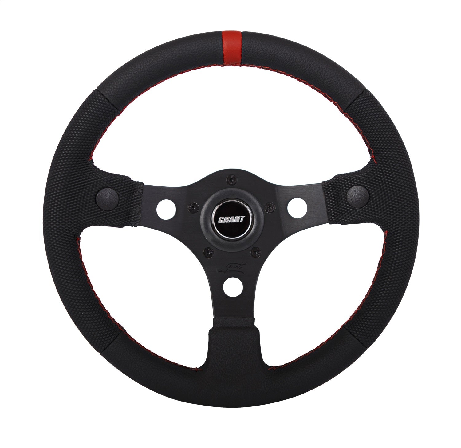 The grip is a combination of hand stitched diamond textured and smooth vinyl with a yellow top marker. A Grant installation kit is necessary to mount this wheel to a vehicle. This wheel will work with Grant standard 3000 or 4000 series, billet 5000 series, or euro 6000 series installation kits.