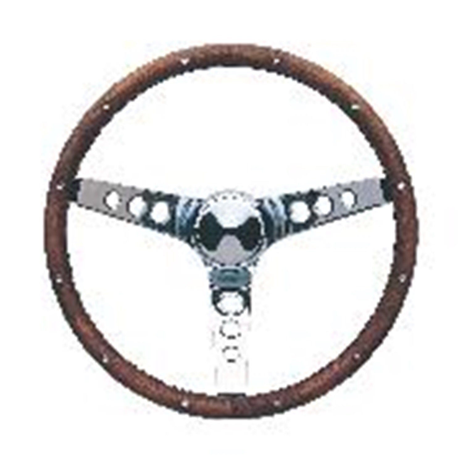 Classic Wood Steering Wheel; 13 1/2 in. Diameter; 3 3/4 in. Dish; Walnut Finish w/Anodized Aluminum Rivets; Chrome 3-Spoke Design;