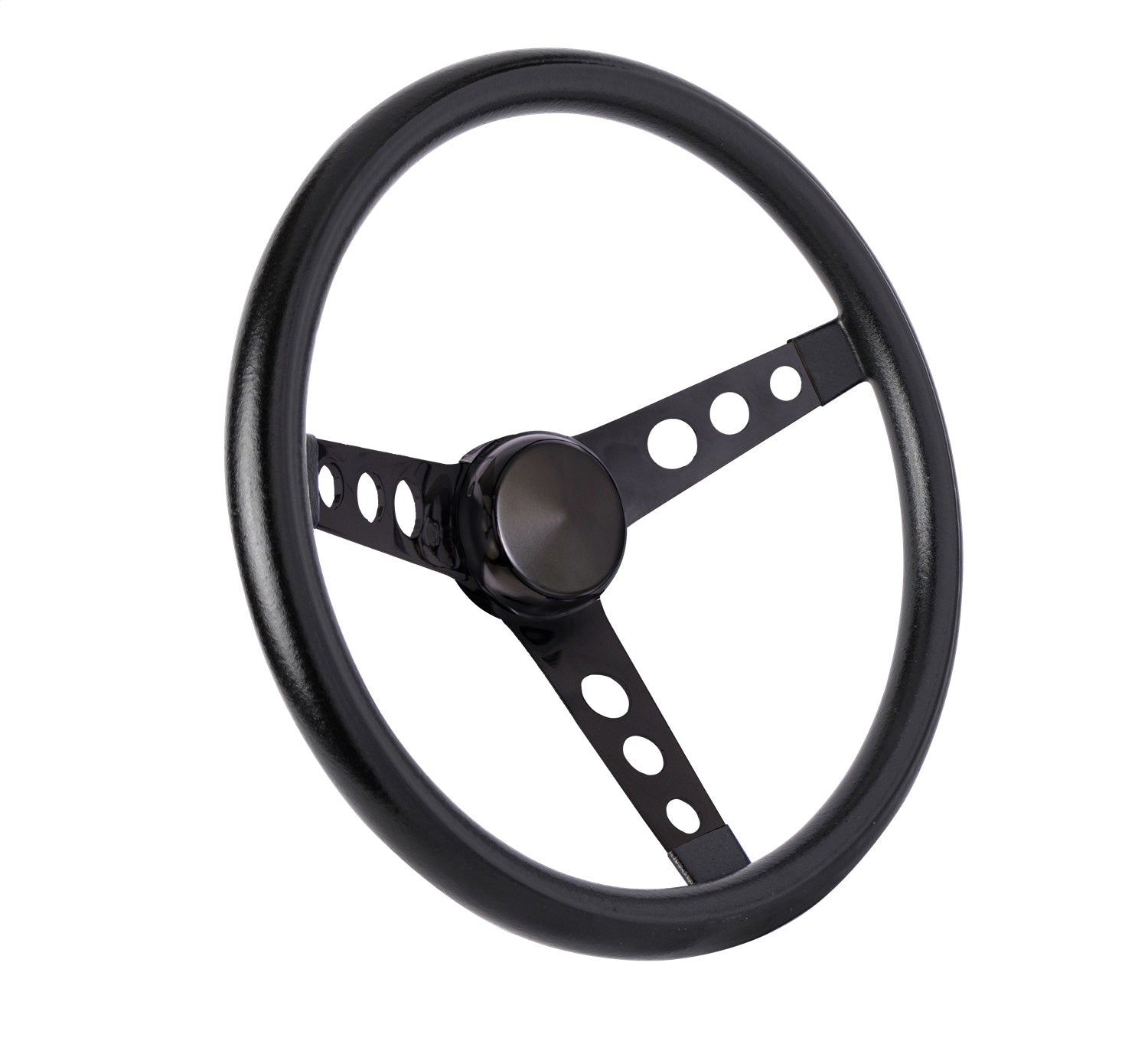 Classic Series Steering Wheel; 13 1/2 in. Diameter; 3 1/2 in. Dish; Black Cushion Grip; Black Steel 3-Spoke Design;
