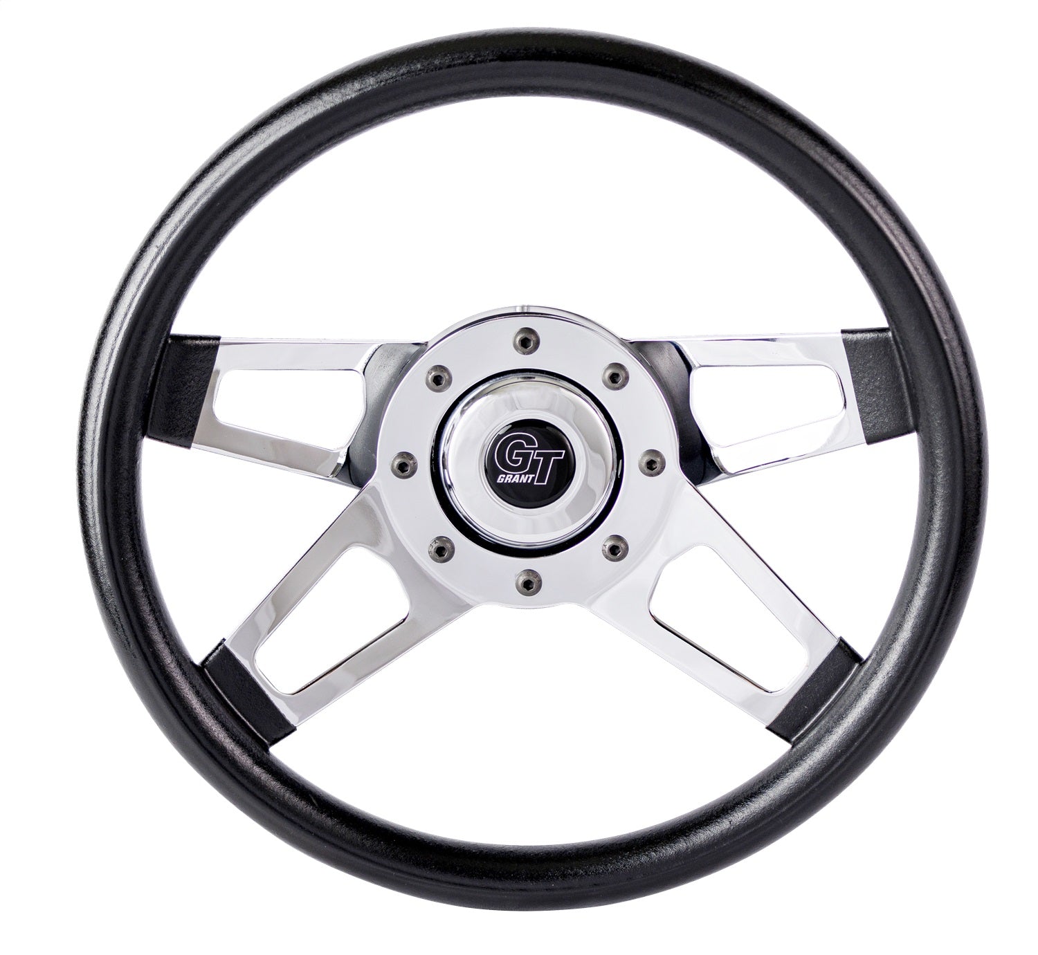 This wheel features Grant's exclusive dual-plane spoke design. This 3-dimensional hi-tech, dual-plane 4-spoke design offers a world class look. A Grant installation kit is necessary to mount this wheel to a vehicle. This wheel will work with any Grant Standard 3000 or 4000 Series Installation Kits. It will not work with Grant billet or euro installation kits. Note: The eight bolt pattern you see around the horn button is decorative only and this wheel is still a three bolt pattern beneath the horn button.