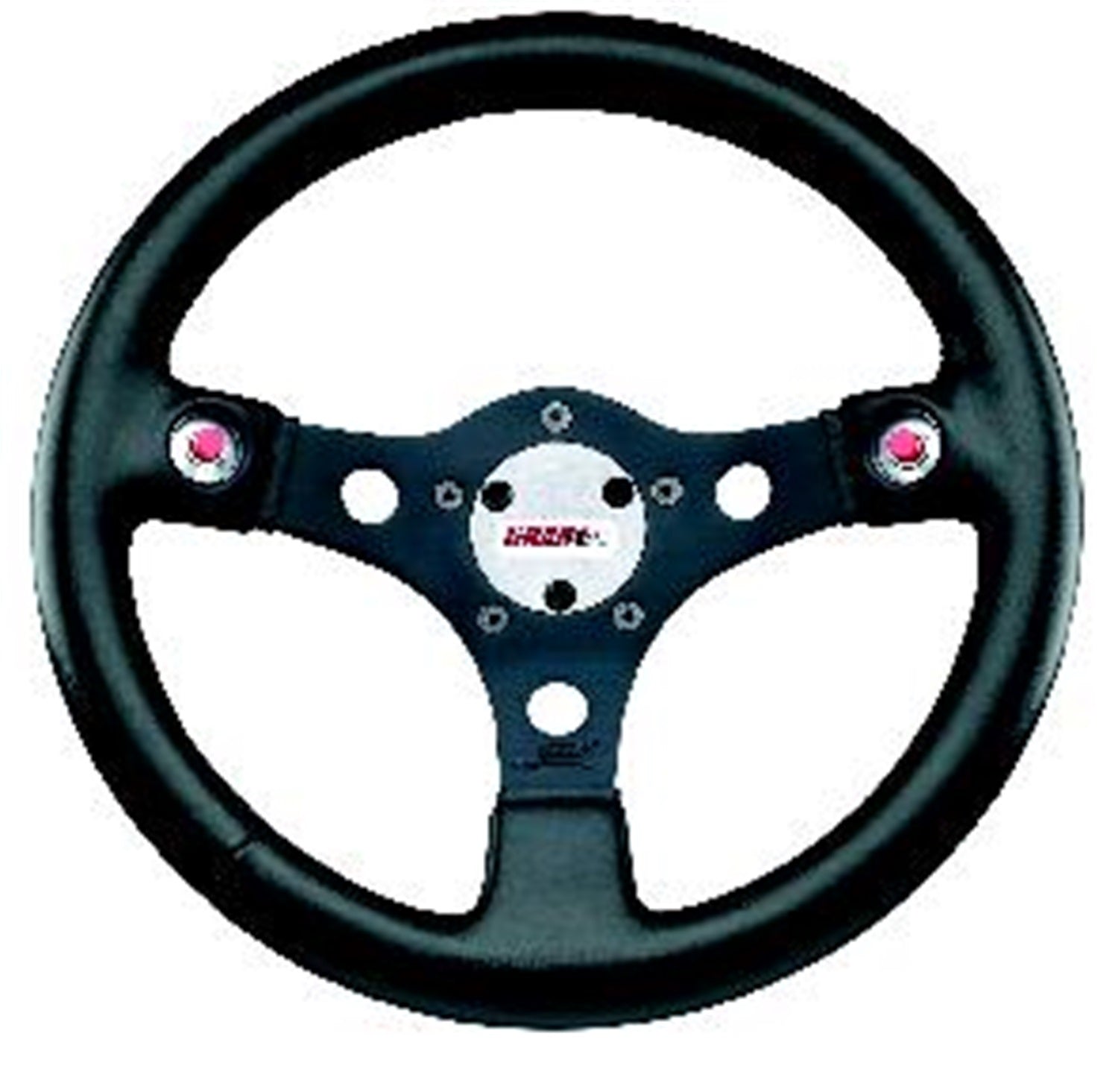 This top marker wheel features our combination of diamond vinyl and smooth vinyl grip for a sure grip feel. It also has two holes pre-drilled and ready to mount 11/16 in. sized switches. The holes are shipped with plastic plugs just in case you only need a one button set up. Note: This wheel is pictured with an optional quick disconnect kit. This wheel does not come with a horn button or part number 4000 GT styling sleeve. It was designed to be used with our racing quick disconnect kits. If you want to put this wheel on a street car you will need to also purchase a 4000 styling sleeve and a 5898 horn button or a similar Signature Series horn button and of course an installation kit.