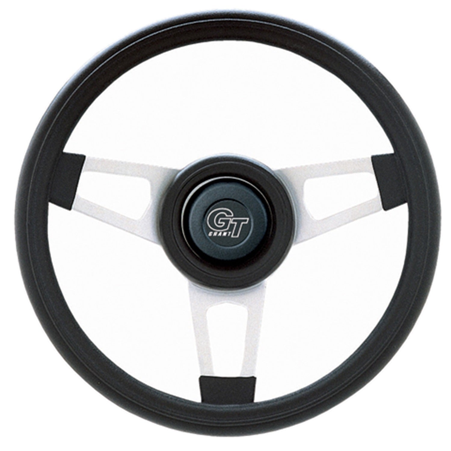Challenger Steering Wheel; 13.75 in. Diameter; 2 1/4 in. Dish; Black Cushion Grip; Satin Silver 3-Spoke Design;