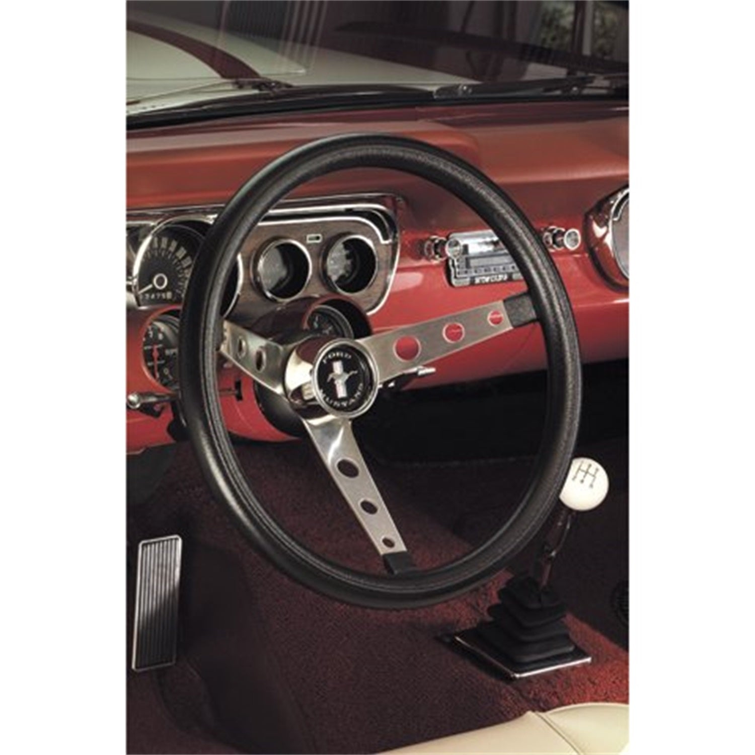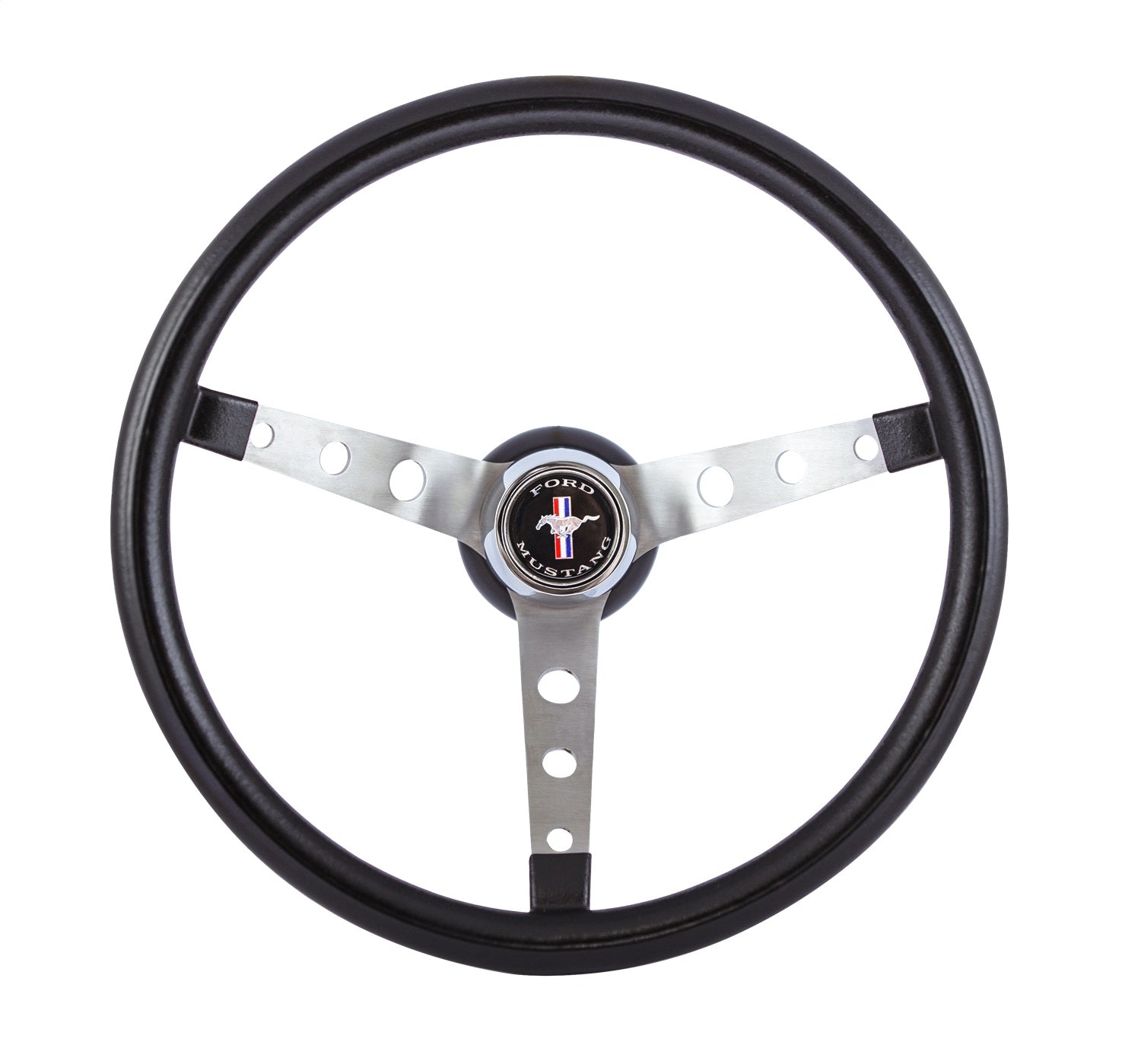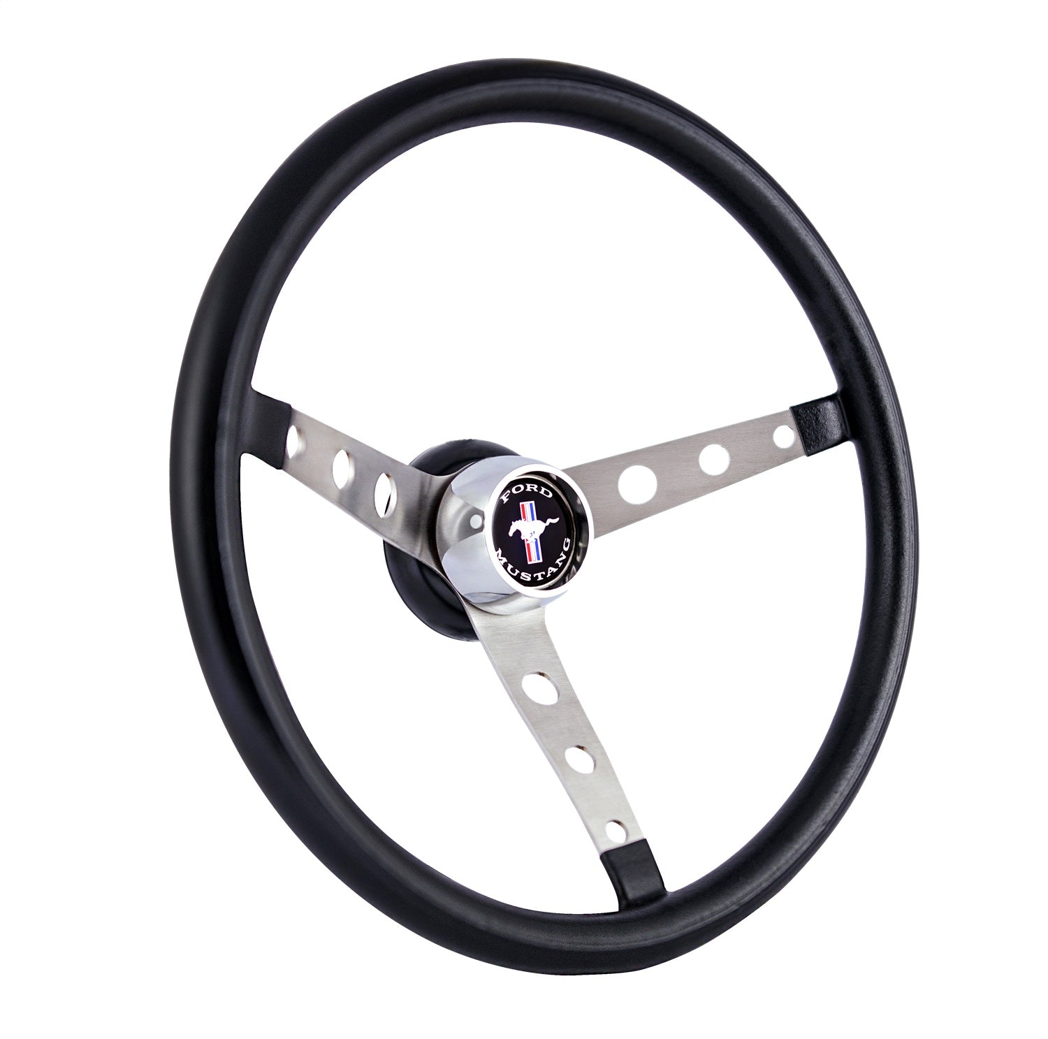 Classic Series Nostalgia Steering Wheel; 15 in. Diameter; Black Foam Cushion Grip; Brushed Stainless Steel 3-Spoke Design; For Use With Mustangs;