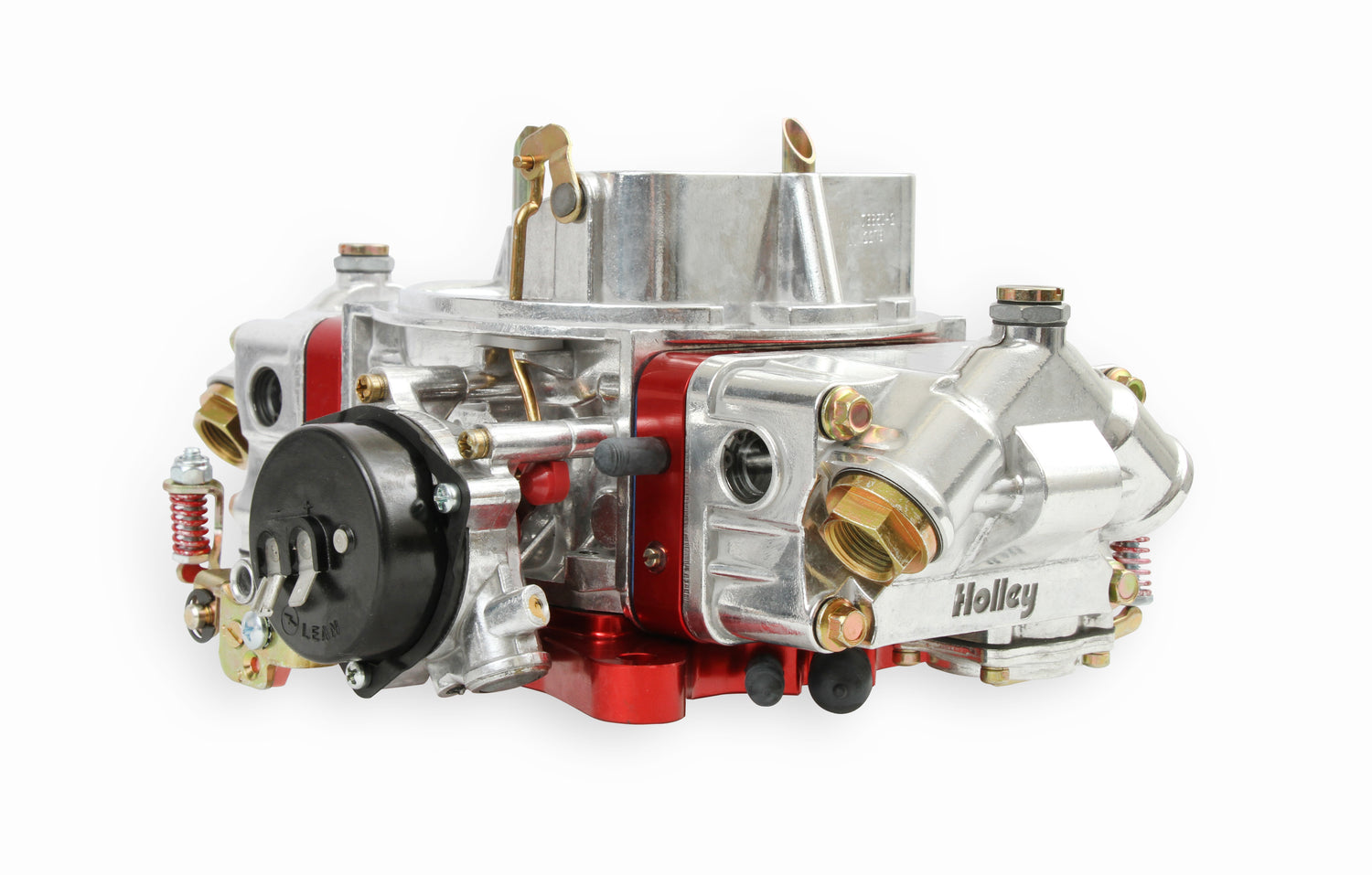 ULTRA light Aluminum construction for 43% weight savings ULTRA shiny Tumble polished finish holds shine longer ULTRA strong Billet metering blocks & base plates ULTRA cooled anodized billet aluminum metering blocks and base plate ULTRA easy Built in sight window for simple float adjustments ULTRA fast High-performance fuel curves Holley Double Pumper carburetors are a perfect performance upgrade for hot street cars and race vehicles. Double Pumper carburetors are an American icon when it comes to performance carburetors. From their roots as the premier carburetor on many factory muscle cars to powering thousands of vehicles across the finish line, the Double Pumper is a great choice whether you are burning up the street or the quarter mile. The Ultra Double Pumper(TM); Carburetors feature all aluminum construction and are equipped with metering blocks and a base plate made from 6061-T6 billet aluminum. They weigh in at approximately 5 lbs. less than a comparable zinc carburetor. The new Ultra Double Pumper Carburetors have an enhanced fuel curve for optimum performance, with many more features such as aluminum construction; anodized billet aluminum metering blocks and base plate; 4 corner idle for precise idle control; dual accelerator pumps for additional fuel under initial acceleration; mechanical secondaries for great performance; clear fuel level sight plugs for easy, no mess fuel level adjustments; Ford automatic transmission kickdown for use on popular Ford transmissions; four vacuum ports for all necessary vacuum accessories; and for the first time on a Double Pumper, factory pre-set electric choke for easy, fast cold start-ups. The clean, polished look coupled with Red metering blocks and throttle body will certainly set your ride apart whether you are at the show or track.