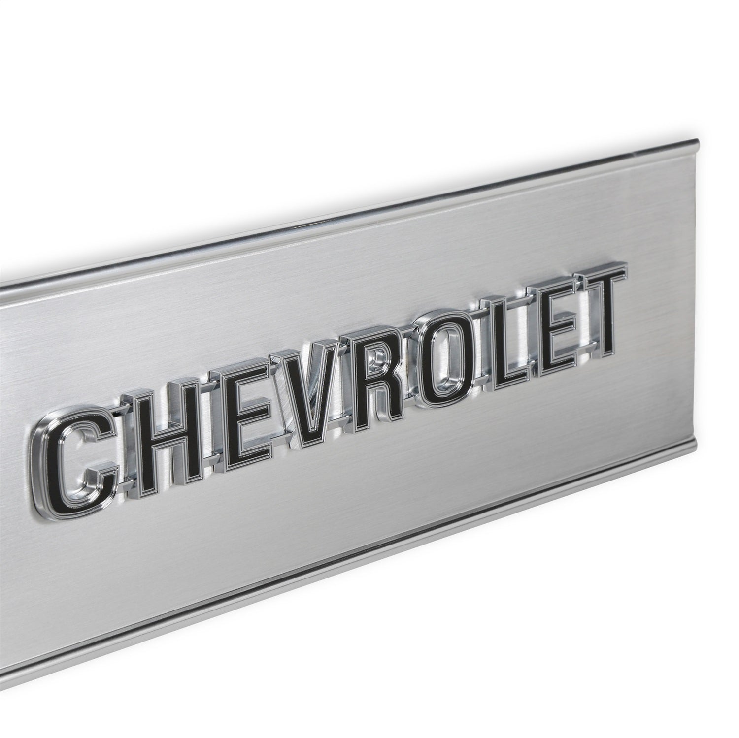 Holley Classic Truck Tailgate Panel; Chevrolet; Black Letter; Brushed Aluminum; Chrome;